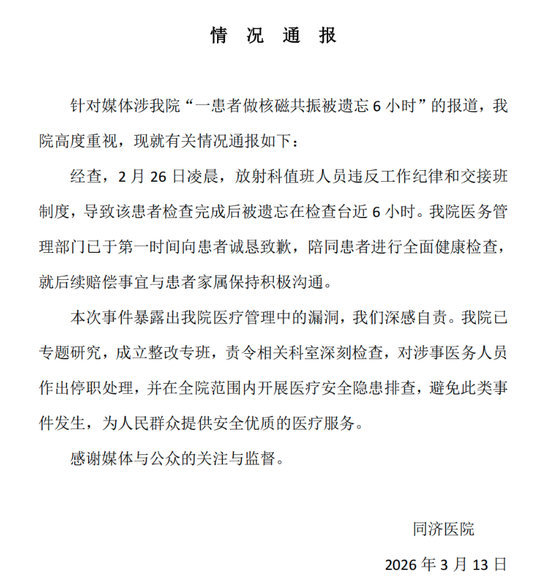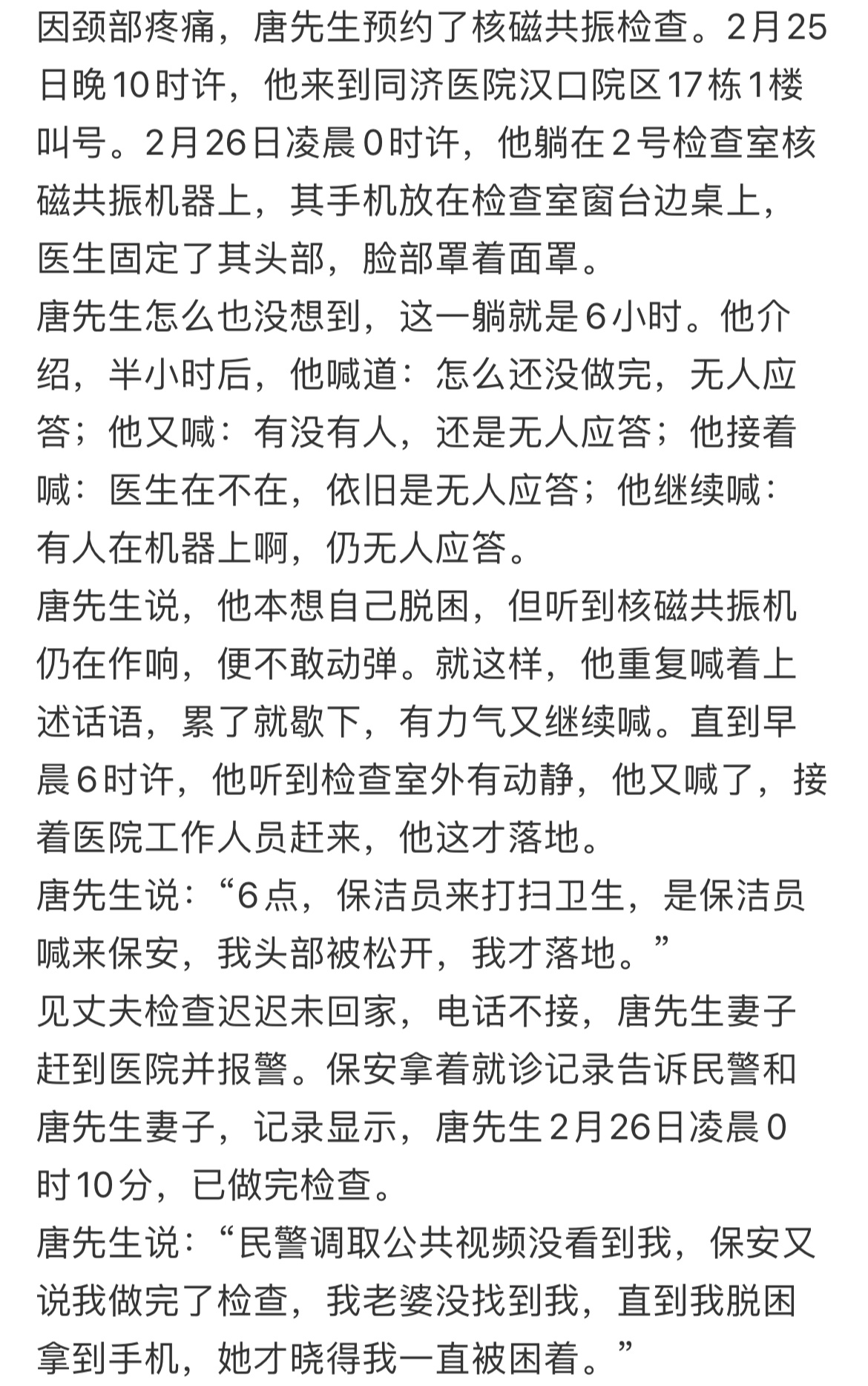 保洁员发现男子被遗忘核磁共振机差点以为是什么疯癫文学,也就是说一次检查20分钟,但核磁共振机器一般不关机,所以被迫做了6个小时核磁共振