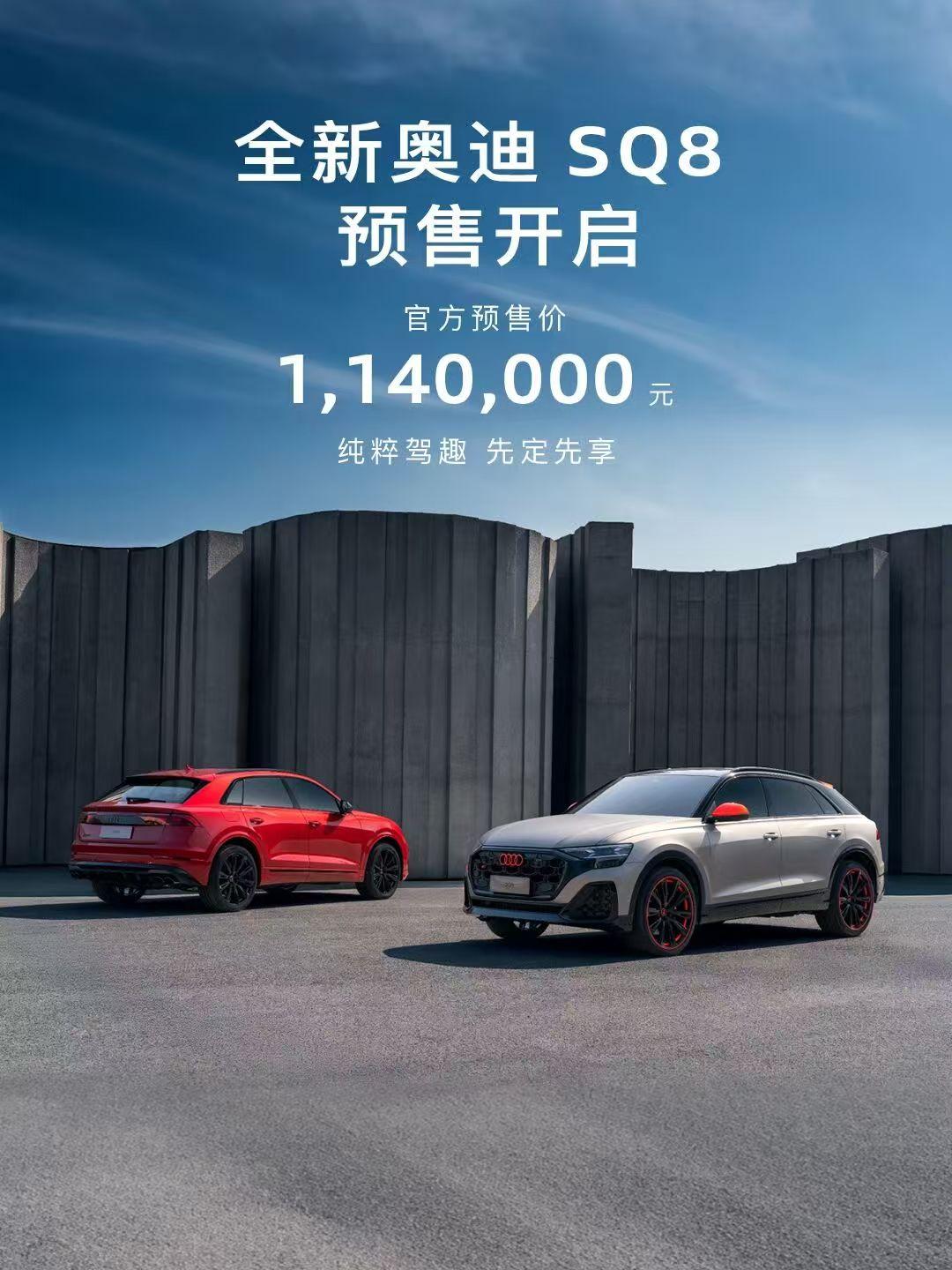 V8,兄弟们,德系大V8。新款奥迪SQ8预售,114万。4.0T V8双涡轮,4秒1的加速。这配色你觉得呢?今年还会引入S5 Avant,再往后奥迪Q9和新一代Q7也都来了【来自懂车帝车友圈】