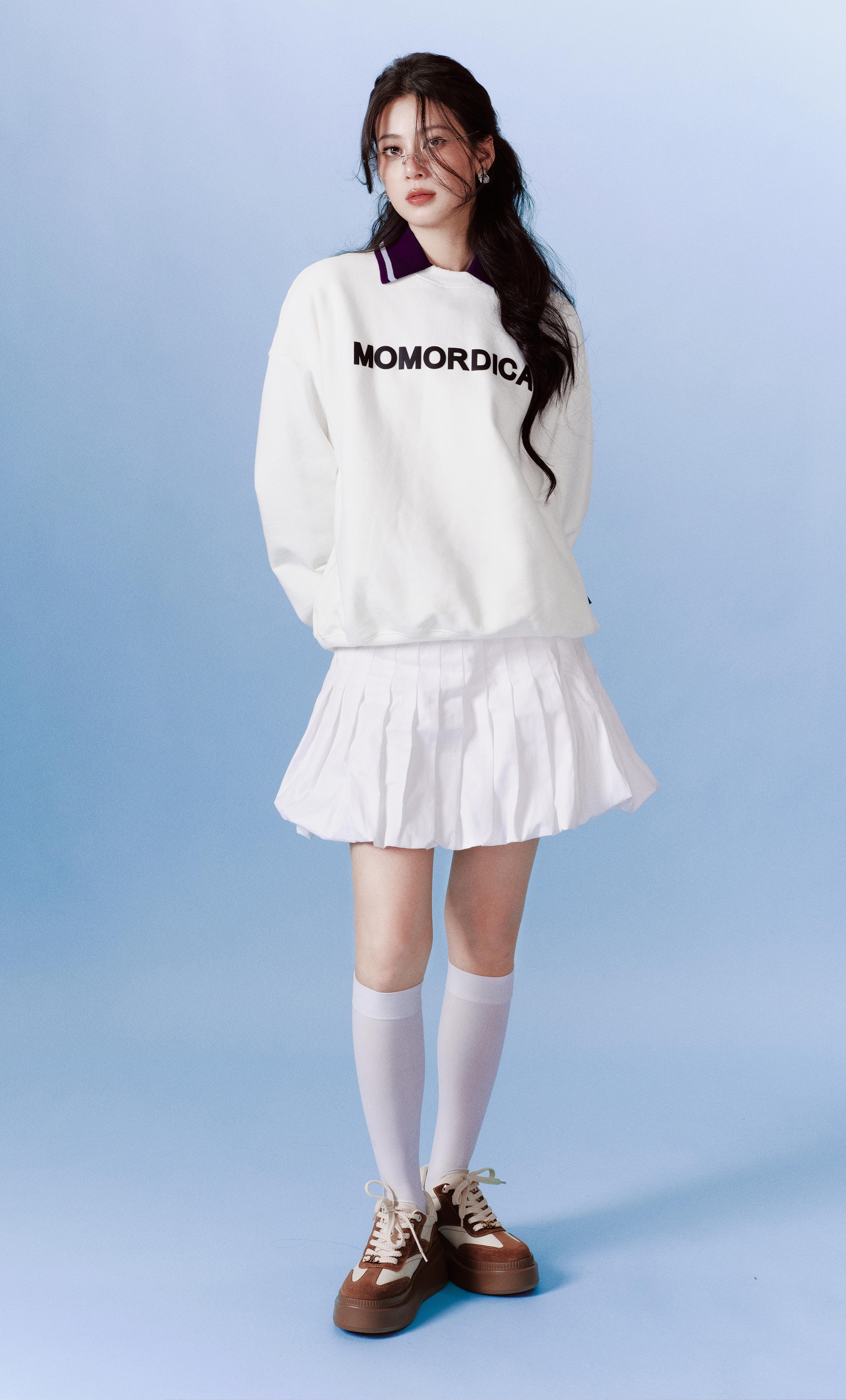 鞠婧祎ELLE美人图鞠婧祎蓝色纱包臀短裙 大长腿一字带细高跟