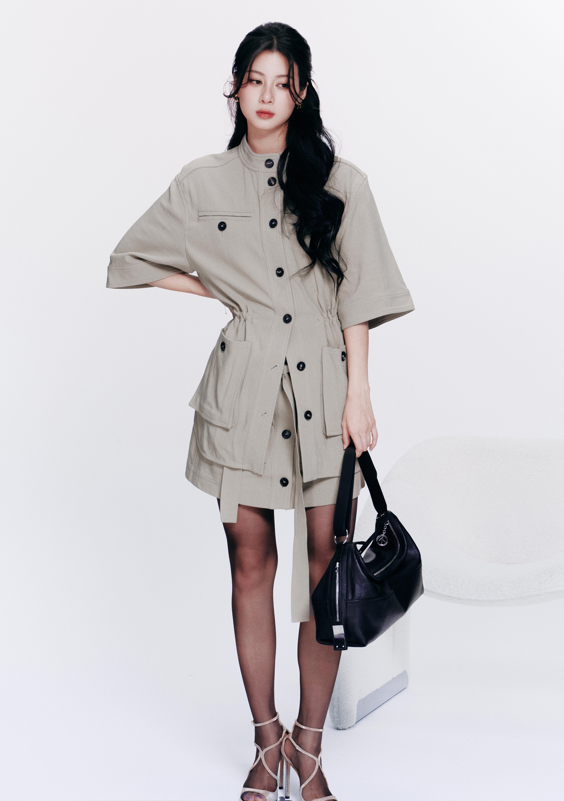 赵昭仪 赵昭仪黑丝诱惑银色一字带绑带细高跟