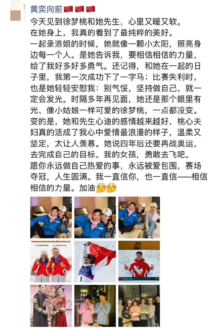 黄奕为徐梦桃王心迪庆功听着她说“我的女孩勇敢去飞”,感觉眼眶都有点热,能这样彼