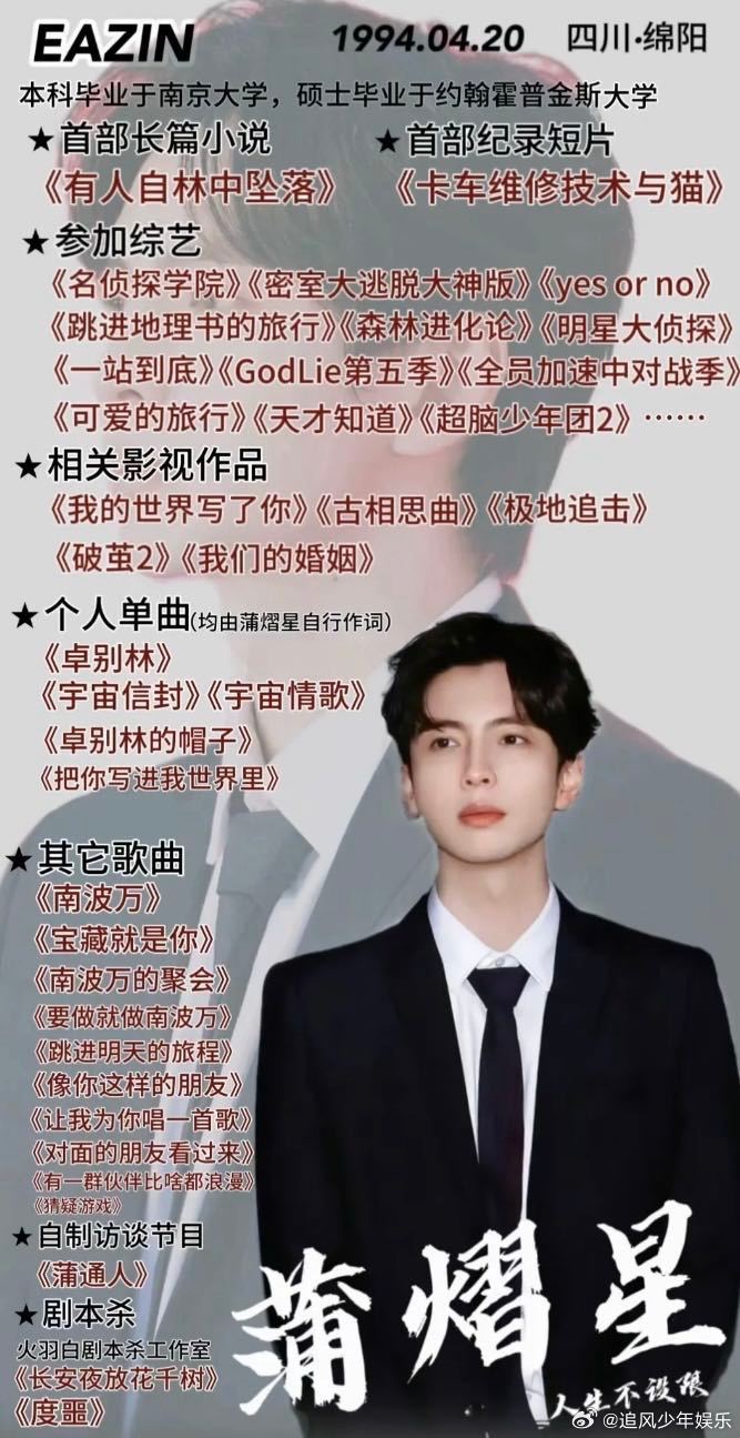蒲熠星真干一行行一行看蒲熠星的履历真的会服气,从学霸到创作者再到音乐人,每一步都