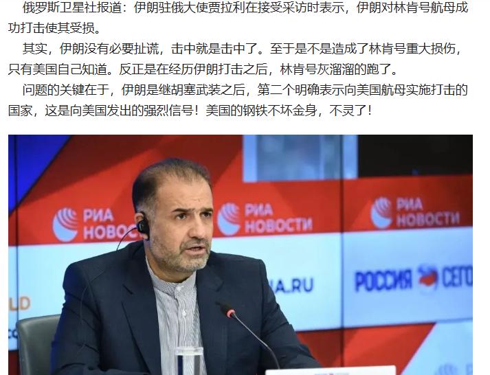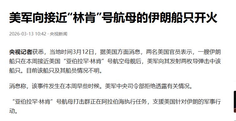 林肯号现在去哪里了? 现在已经成谜了。伊朗说它灰溜溜地在回美国的路上了。 美国说它还攻击了打算靠近它的伊朗船只, 有没有消息灵通人士可以拿到战场态势卫星图啊,我们就想看看现在林肯号去哪里了。 “艾森豪威尔”被胡塞兄弟狂揍的时候,也是各种遮遮掩掩的,现在又是这样。 美国人真的已经被揍得完全没有自信了。 长光卫星,能不能你家@吉林一号给一张[奸笑] 点右上角关注我,我们一起去看这个魔幻的世界