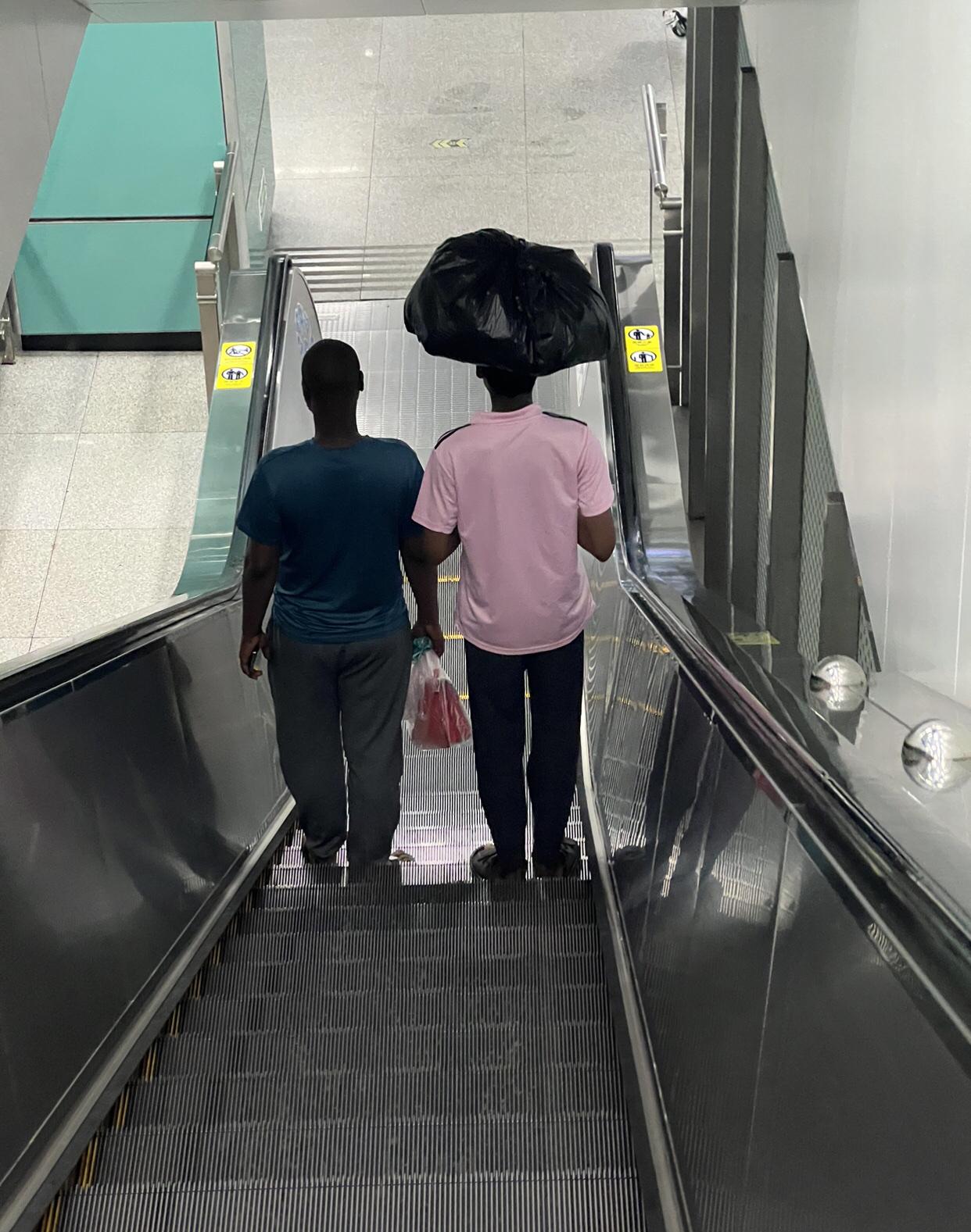 这个箱子是怎么做到平衡而不让它掉下来,一直都想不明白,他们的平衡度怎么做得这么稳呢? 我在西村经常会看到这种操作,这些人双手边刷手机头顶边干活。 这都不算啥,更神奇的是,我曾见过头顶一只大西瓜的, 那次跟着那个黑女人走了半个小时,西瓜一直像焊在她头顶上,纹丝不动!本以为想看她是如何出洋相,可人家还稳稳的进入了小区的电梯里面,手就没碰过一次那个西瓜。