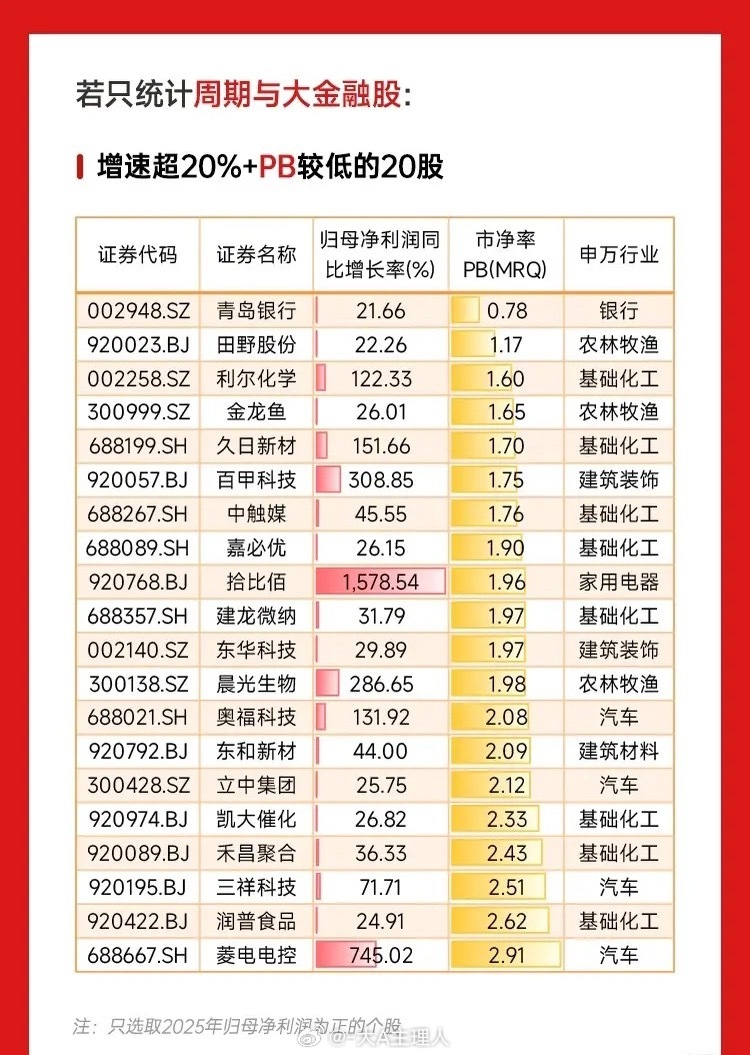 🔥业绩高增+估值洼地!20只增速超20%且PE不足20倍的潜力股名单曝光,覆盖机械设备、电子、医药生物等多赛道,高成长与低估值共振,行业龙头代表:中科蓝讯、中邮科技、冰川网络、中信证券……
