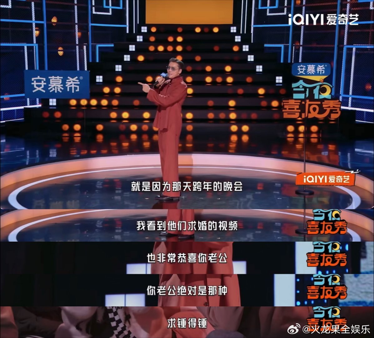 今夜喜友秀 我的评分:陈伟霆说李川求锤得锤 陈伟霆还是太有节目效果了,本来在怀疑这个时代还有没有人喜欢梳背头穿西装的“油腻霸总”,随后就转向了锤娜丽莎,还表示自己看了跨年的求婚视频,恭喜两位,结果画风一转说李川这是“求锤得锤”,又会说又有梗,全场直接笑翻今夜喜友秀