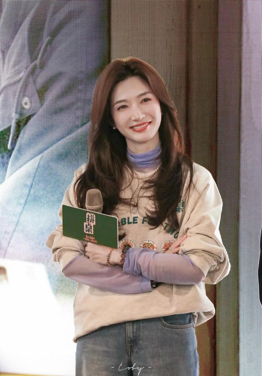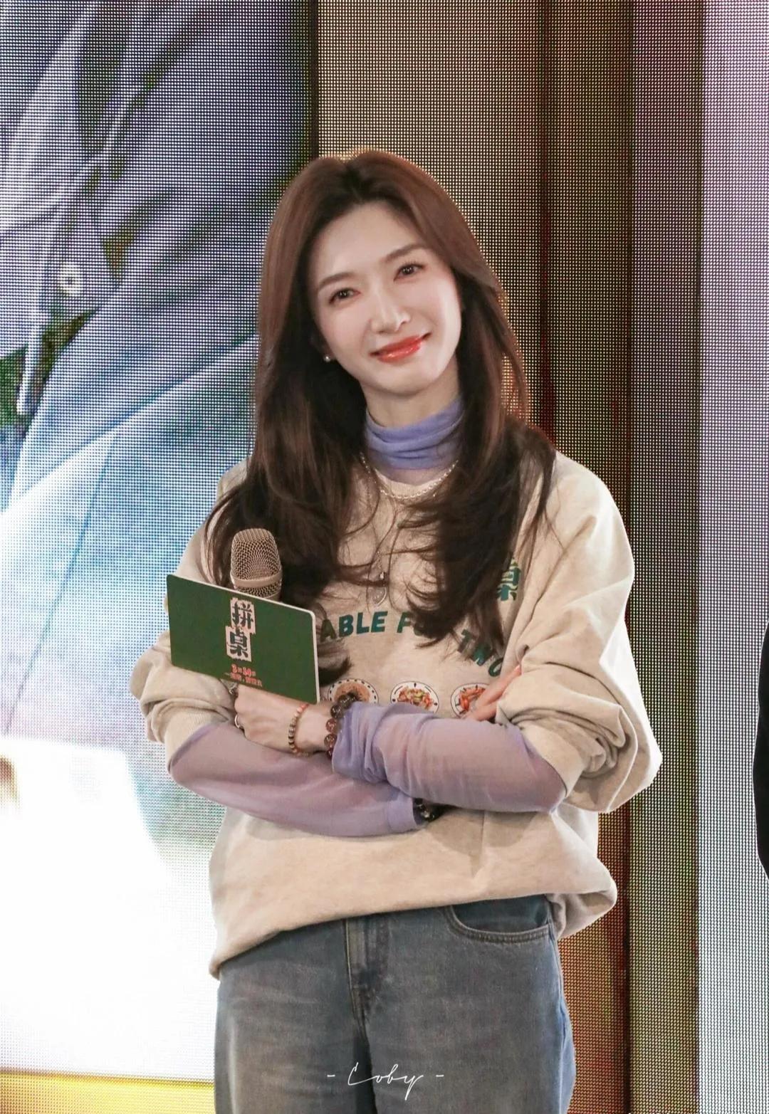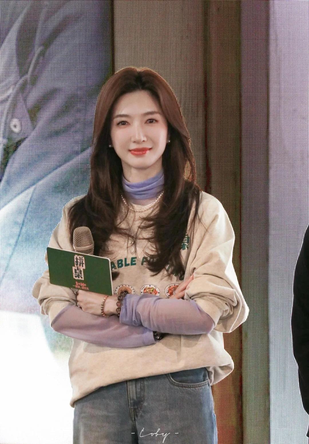 江疏影这组春日穿搭太温柔了!💜 浅紫薄纱高领打底叠搭男友风卫衣,软乎乎的燕麦色+淡紫撞色,慵懒又带点小女人味,牛仔裤一搭,清爽减龄,完全是春天该有的样子~ 江疏影 明星穿搭 春日穿搭 叠穿技巧