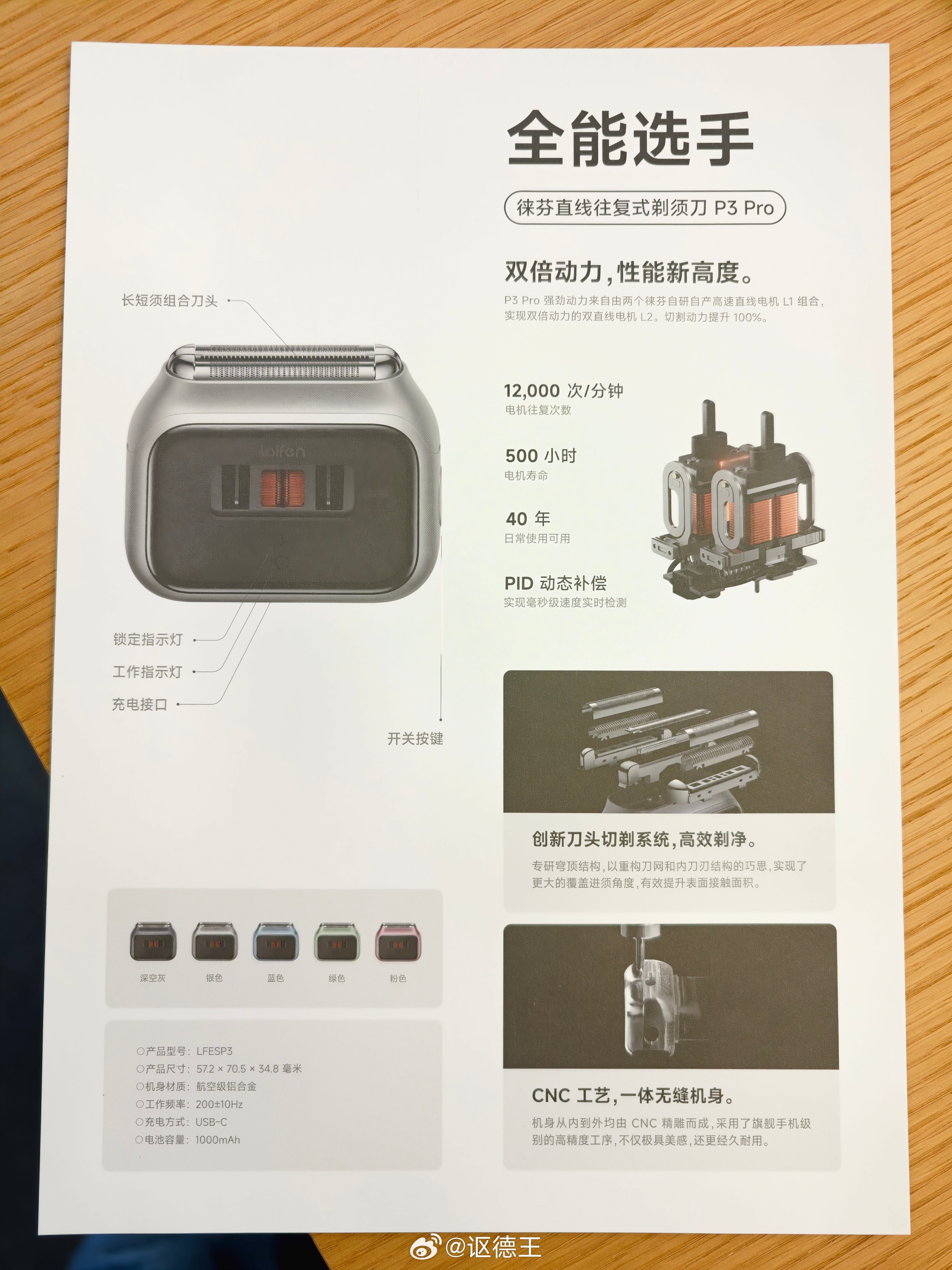 别看徕芬这个剃须刀个头小,但是它沉啊!做这么小不就是为了便携吗?搞这么重不是要增加出行负担吗?想不通这个产品定义的逻辑。看到宣传页说它寿命长达40年,我心想我那100块钱的飞利浦剃须刀用了26年了也还没坏啊