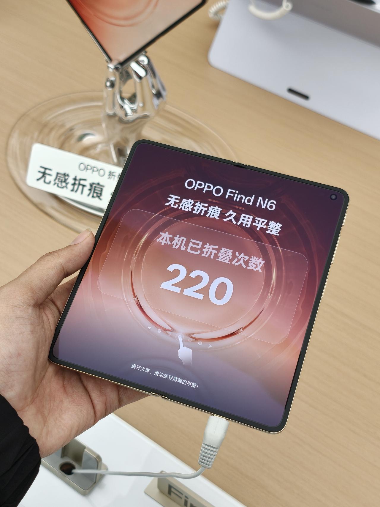 Find N6这折痕是认真的吗? 今天下班溜达路过OPPO门店,没想到OPPO Find N6这么毫无预告地摆在柜台了??? 我直接一个箭步冲上去沉浸式体验了!来说说第一眼感觉: 折痕控制是真的有点东西。我特意换了好几个角度盯着看, 点亮屏幕的状态下几乎找不到痕迹,手指滑过去很平滑, 没有那种明显的沟壑感,这点必须给个好评👍 而且橙色那款真的好好看啊,真机比图片质感强太多了 另外手机拿着很扎实,并不会觉得重,跟直板机差不多 外屏边框变窄后屏占比看着更舒服了,展开后的内屏视觉上很完整, 刷了下演示视频,沉浸感确实比直板机强。 店员说3月17号晚上7点发布会,过后就能直接拿真机了。 本来只是路过随便看看,现在有点想冲了…… 希望这代不要涨价太猛!! OPPOFindN6 折叠屏手机 路人视角 FindN6无感折痕 视觉无折痕下班日常 折叠屏