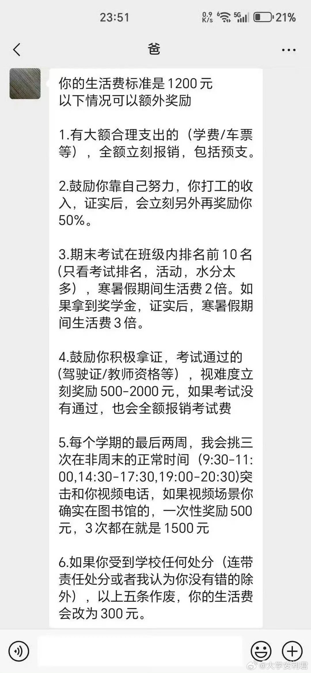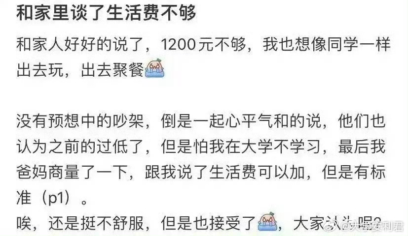 和家里谈了生活费不够。