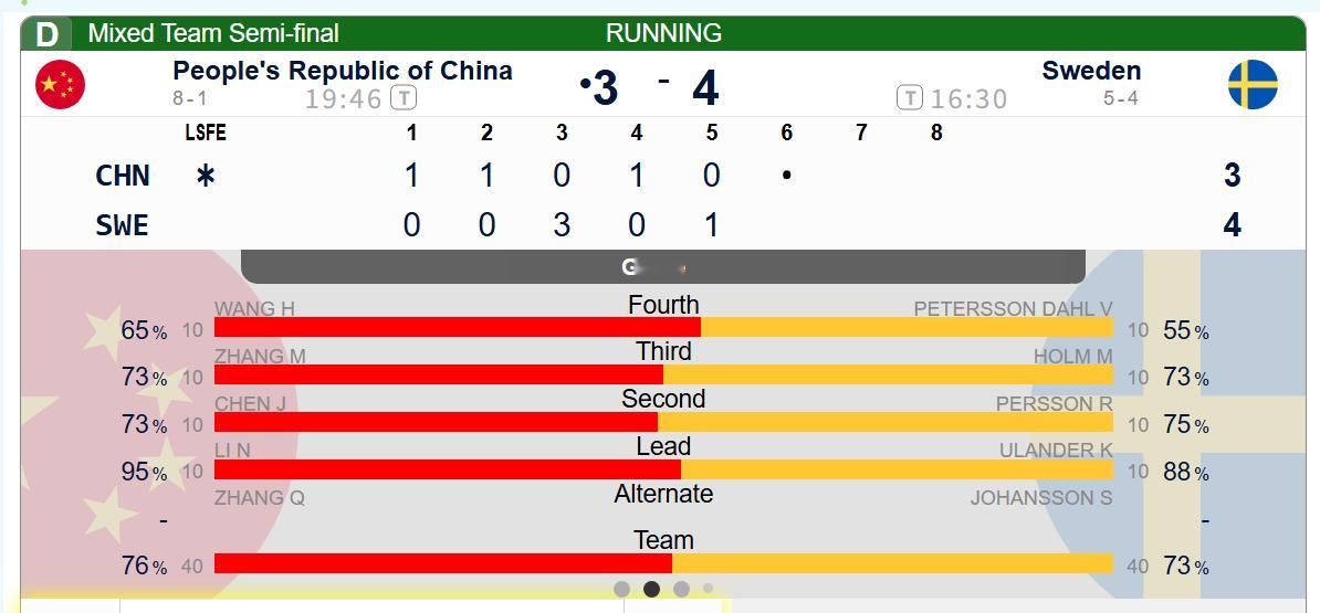 【奥运半决赛】中国前七局6-6瑞典,第八局是常规局最后一局,中国需要后手拿分