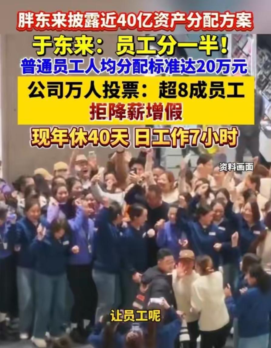 3月8日,整个中国企业界再次集体沉默。胖东来创始人于东来投下一枚重磅炸弹——将价值37.93亿的公司资产,从私有制全面转为全体员工共有。 这不是针对管理层的股权激励,也不是小范围福利试点,而是全员覆盖、一人不落。胖东来集团10194名在岗员工,从店长、技术岗,到理货员、收银员、保洁,全部纳入权益范围。没有岗位歧视,没有工龄门槛,只要是正式员工,都能成为企业所有者。 于东来做出这个决定,完全是有迹可循的长期坚持,并非一时冲动。从2000年开始,他就定下规则,每年把公司50%的利润分给全体员工,这份分配机制已经稳稳落地26年。 2026年2月他刚官宣退休,不到一个月就推进资产全面确权,做事向来不画饼、不拖延。官方披露的分配方案清清楚楚,8633名普通员工人均可获20万元资产份额,全程公开透明无猫腻。 国内零售基层岗位月薪普遍在4200元左右,胖东来普通员工税后月均收入超9000元,直接翻倍还多。他不光给高薪,还强制员工休40天年假、每周固定闭店休息,坚决不让员工过度加班。 市面上太多企业把“以人为本”挂在嘴边,实际分配时只向管理层倾斜,基层员工连汤都喝不到。于东来偏偏反着来,把近38亿核心资产全部分给全员,彻底打破行业的固有分配陋习。 企业的生命力从来不在创始人手里,而在每一个干活的员工身上。胖东来能收获全网好评,核心就是于东来始终把员工当合伙人,而不是可控的人力成本。 他用实打实的资产分配证明,真正的企业格局,是愿意把发展红利分给每一位付出的人。只盯着个人利益的企业走不远,懂得共享的团队才能长久站稳脚跟。 各位读者你们怎么看?欢迎在评论区讨论。