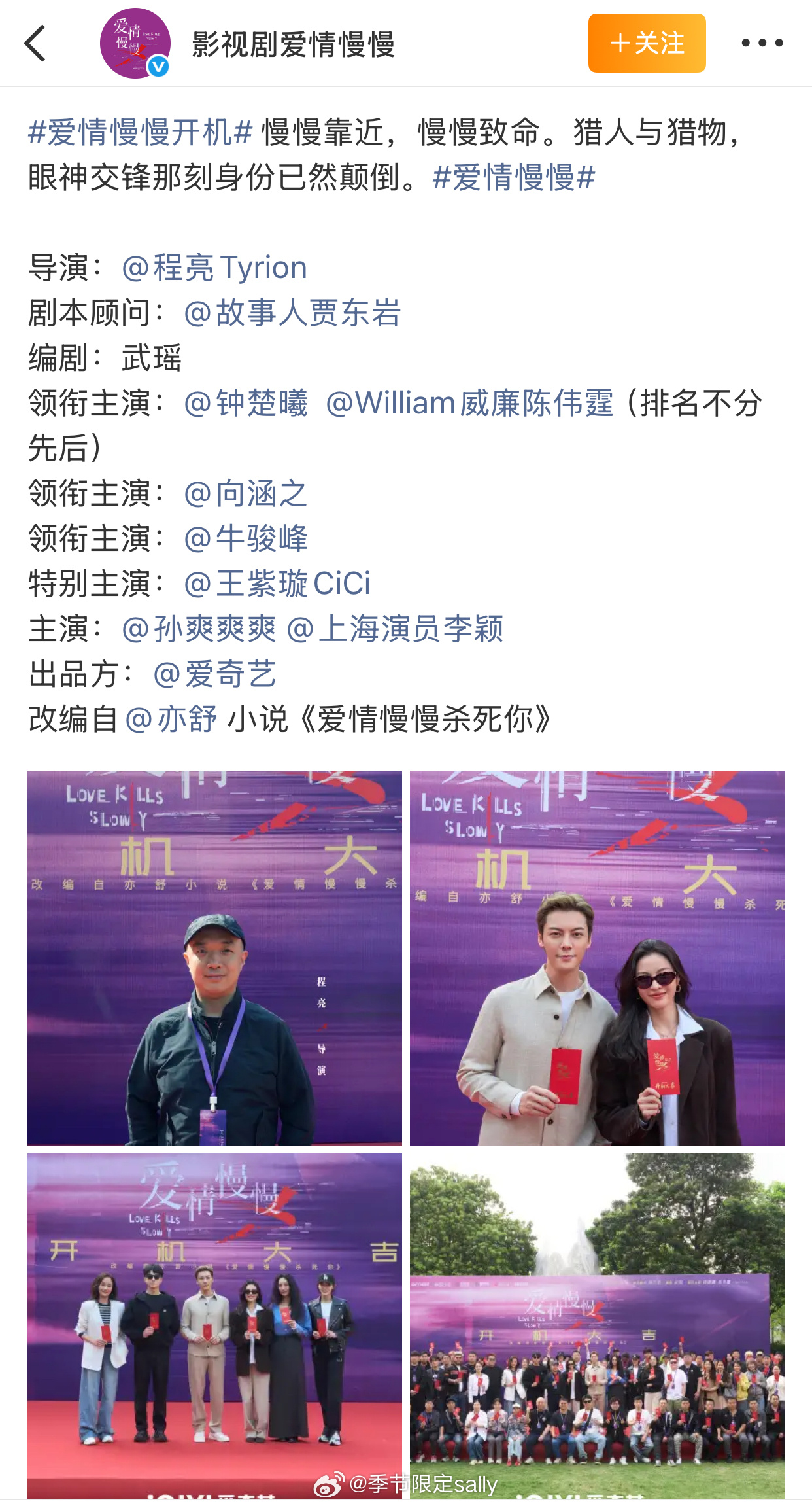 钟楚曦陈伟霆 (排名不分先后)电视剧爱情慢慢今日官宣开机
