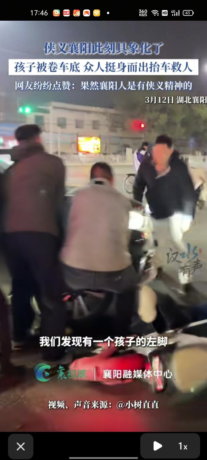 3月12日,湖北襄阳。骑车女学生途中在路上被卷入车底,为避免二次伤害,路人们纷纷加入,一起把车抬起来。从事故后到被救出也只有三分钟的时间,侠义襄阳在此刻具象化了。