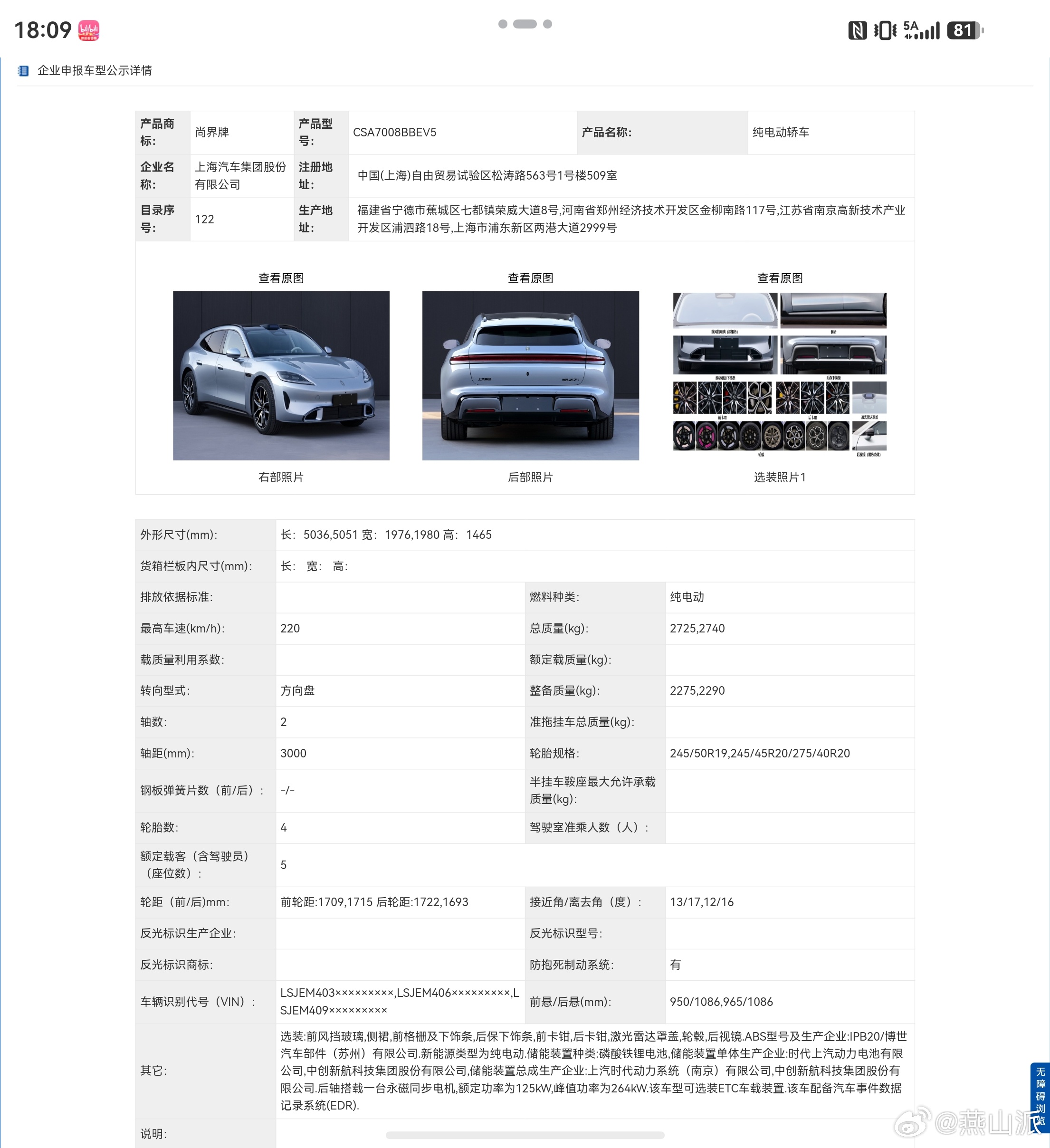 尚界Z7轿跑猎装双车同步公示这工信部照片可以的,不丑,尤其是猎装版,属实有点心动