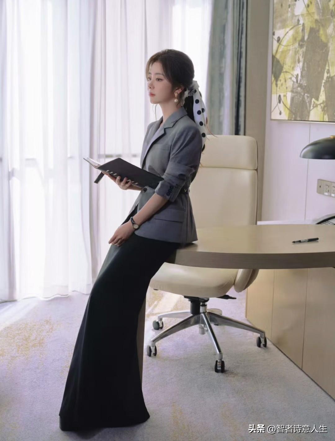 看谭松韵穿黑裙配西装,职场精英既视感,自信从容,太有魅力了!职场西装裙穿搭明星
