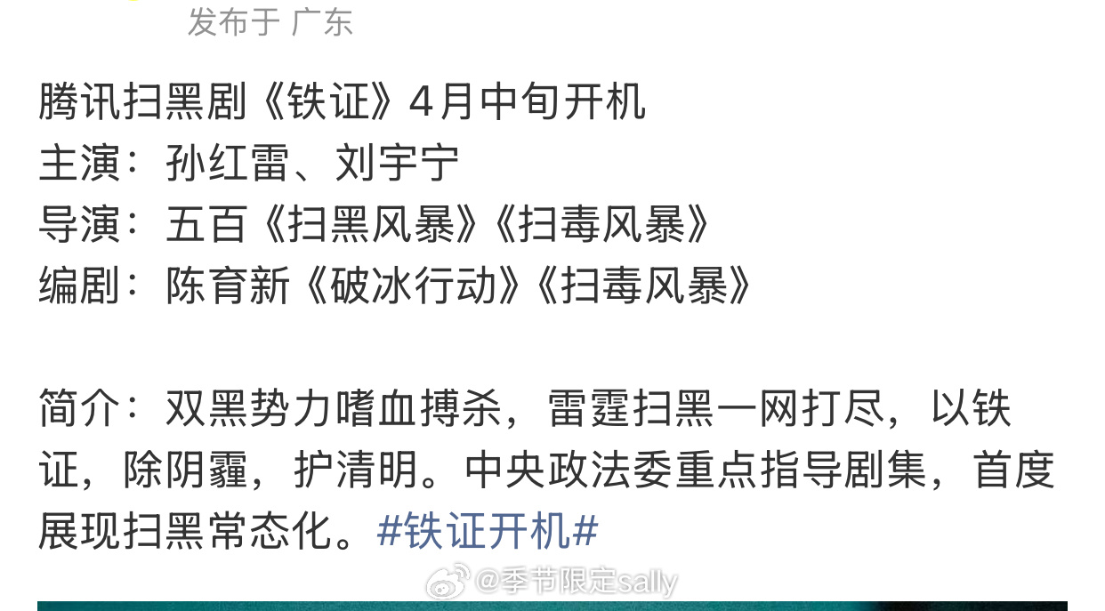 🍉孙红雷 刘宇宁 铁证 4月中旬开机