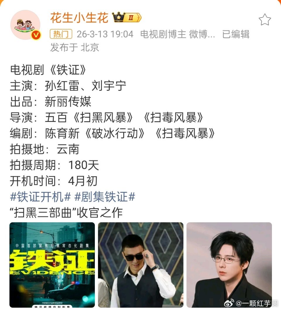 铁证 孙红雷刘宇宁这是基本确定了吧!刘宇宁闷声干大事啊!不过演技台词都很好,什么好饼都值得