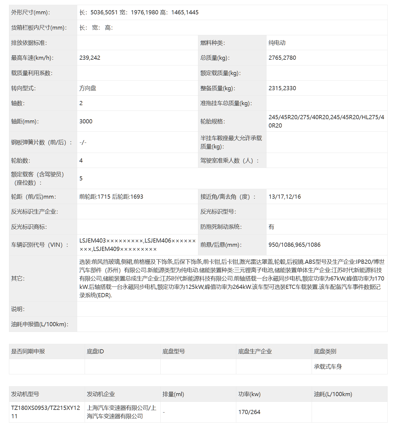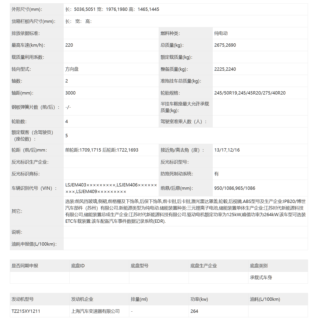➡️尺寸(2个值可能是因为包围和空悬)长:5036,5051 宽:1976,1980 高:1465,1445(机械悬架1465)轴距:3000(小米SU7:长宽高4997x1963x1455mm;轴距:3000mm)
