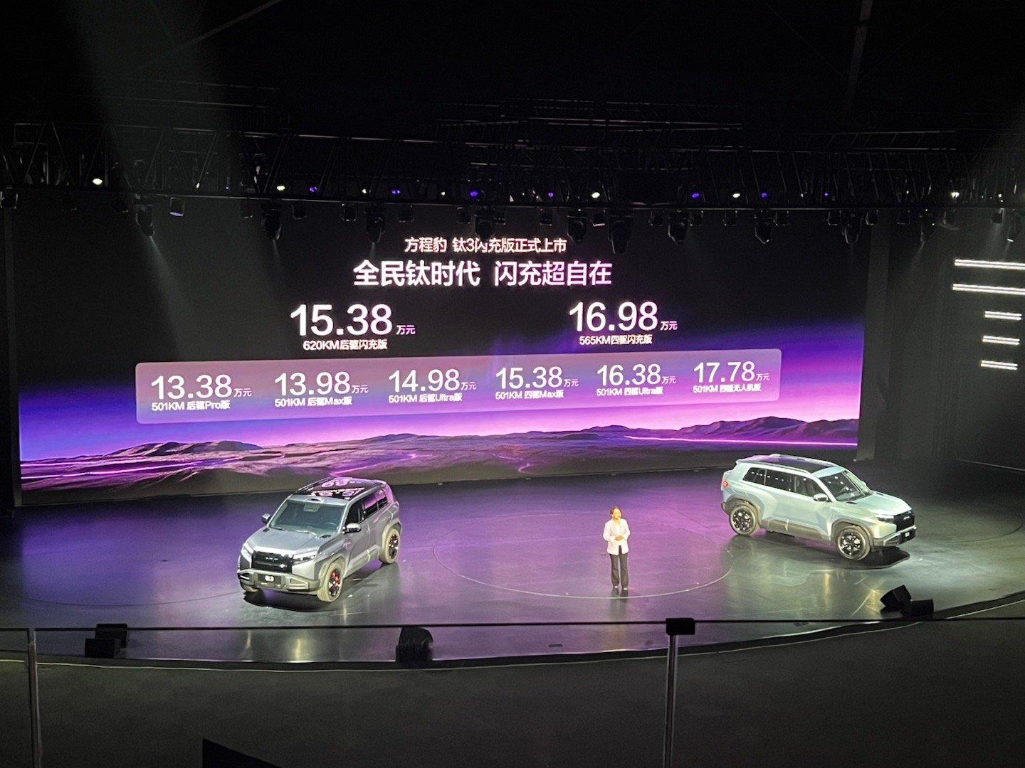 方程豹钛3闪充版来了后驱版15.38万、四驱版16.98万前两天才发布了闪充马上