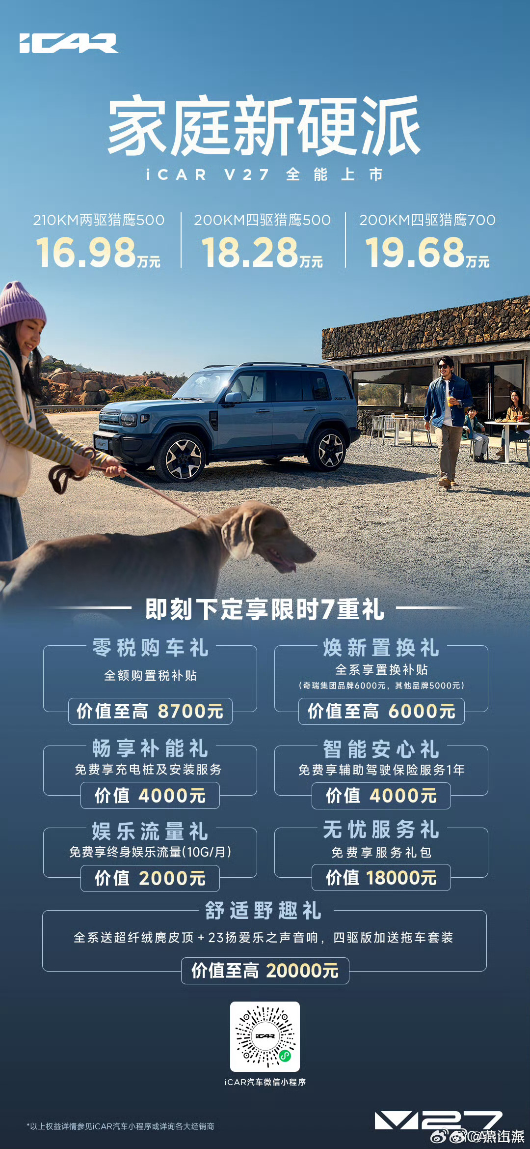 iCAR V27 售价 16.98万起,你觉得如何V27全能硬派全家都爱iCARV27全能上市16.98万起