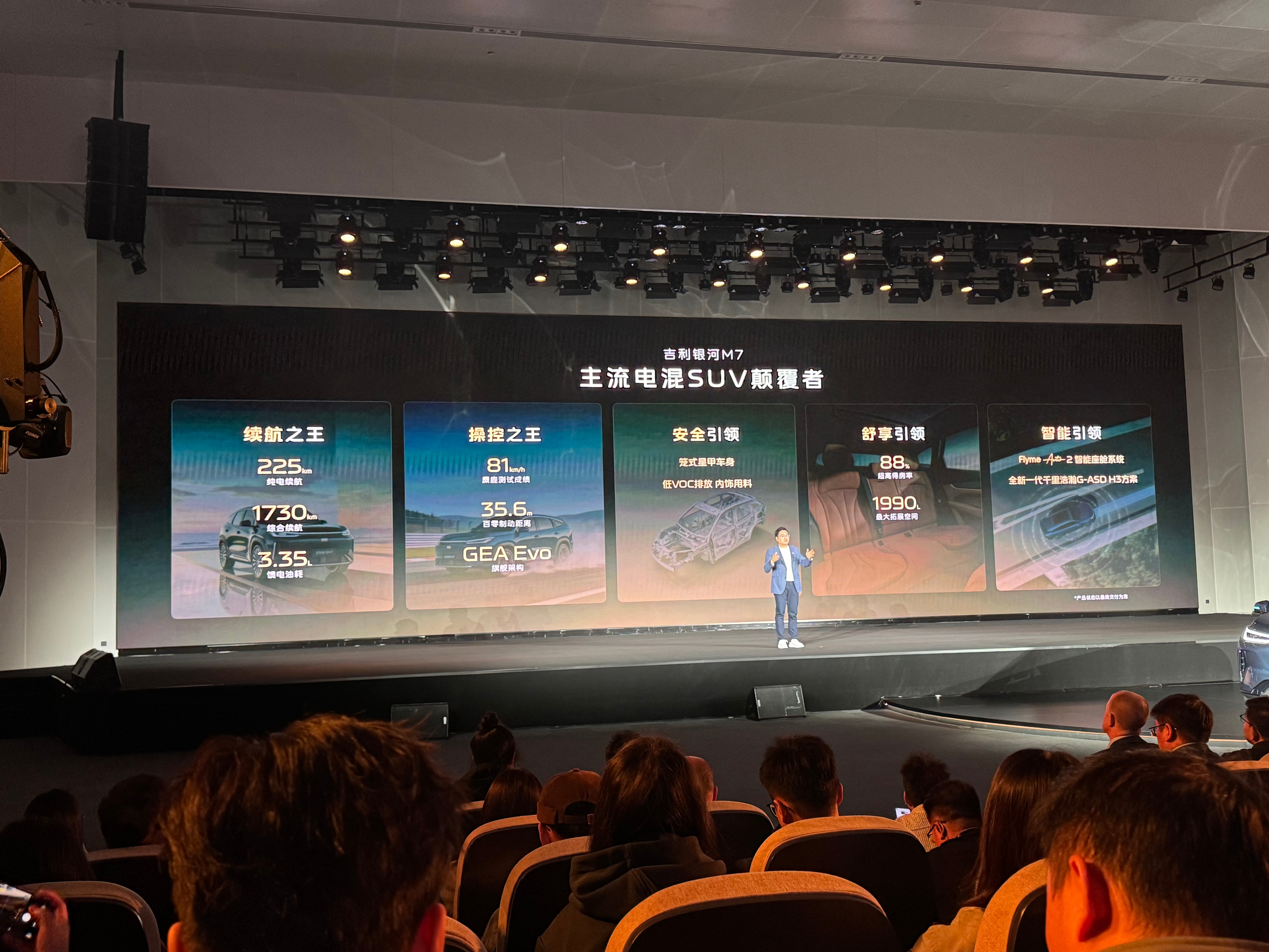 今晚,吉利银河发布了全新神盾金砖电池混动系列,银河M7作为主流电混SUV,纯电续航达到225km,综合续航1730km,馈电油耗仅3.35L。核心拥有四大技术突破:长续航、超快充、超耐用、超安全,吉利这次亮出了实打实的硬实力。吉利银河M7吉利银河M系新成员来了吉利银河迈入长续航时代