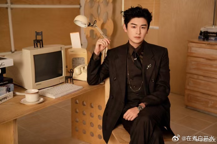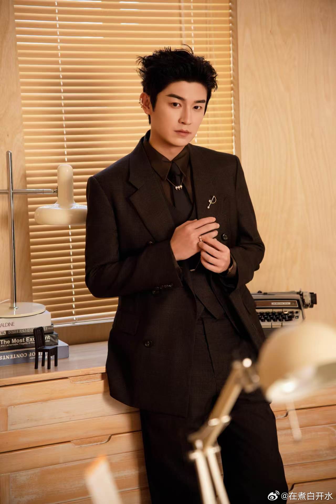 谁来懂一下杨旭文这个耳骨夹杨旭文这造型太戳人,露额黑西装加金链,单侧耳骨夹氛围感拉满,成熟帅气越看越上头