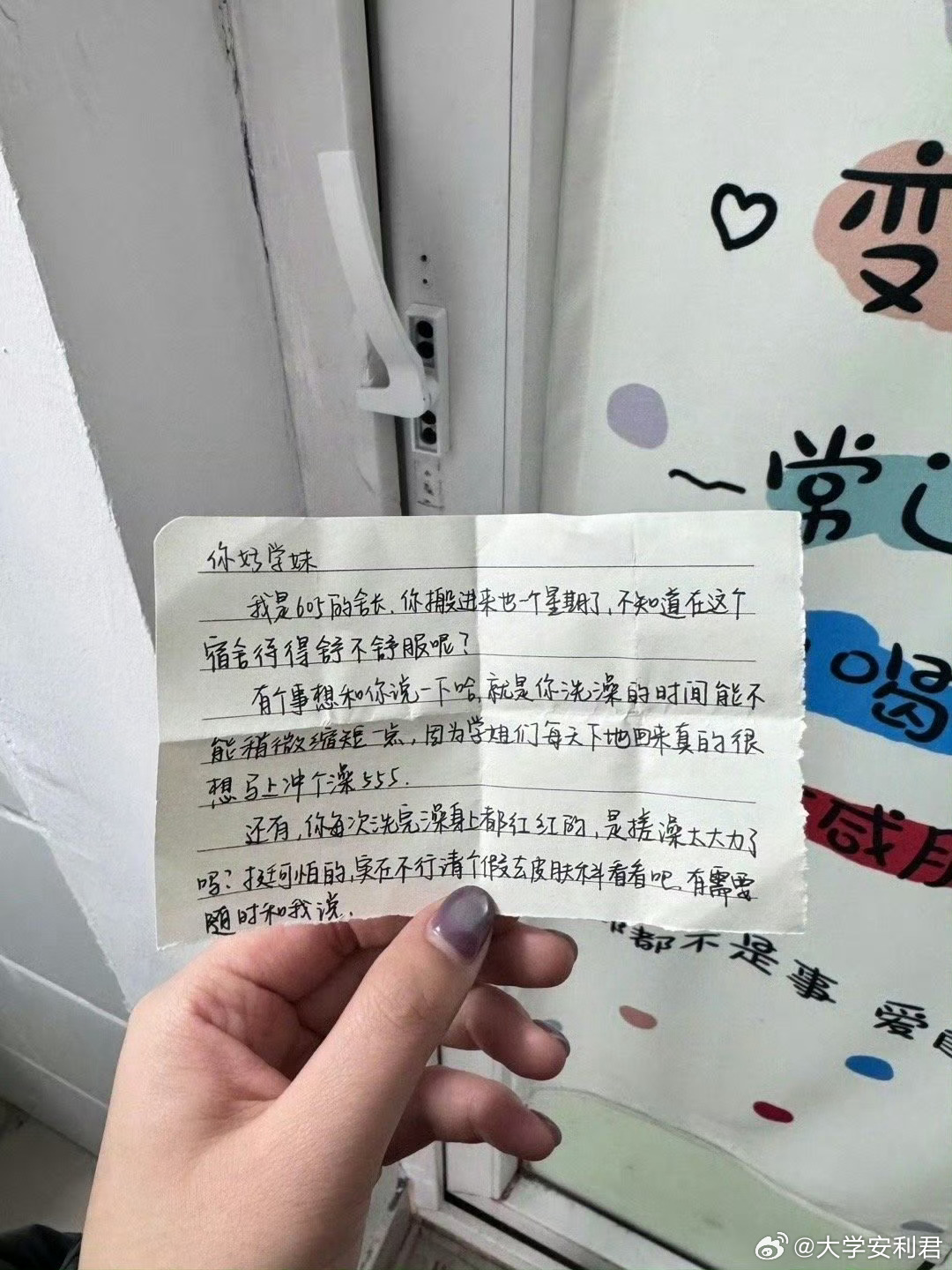 挺无语的,在宿舍洗澡被舍友贴纸条了