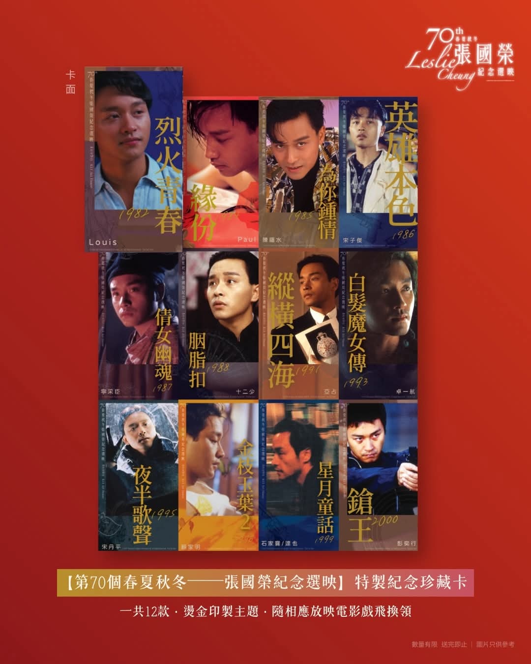 香港影讯 【第70个春夏秋冬──张国荣纪念选映】:::: 4月到9月 K11 Art House特別放映 ::::🎥 選映電影:《烈火青春》4K修復版、《緣份》、《為你鍾情》、《英雄本色》4K修復版、《倩女幽魂》、《胭脂扣》4K修復版、《縱橫四海》4K修復版、《白髮魔女傳》 4K修復版、《夜半歌聲》4K修復版、《金枝玉葉2》、《星月童話》、《鎗王》
