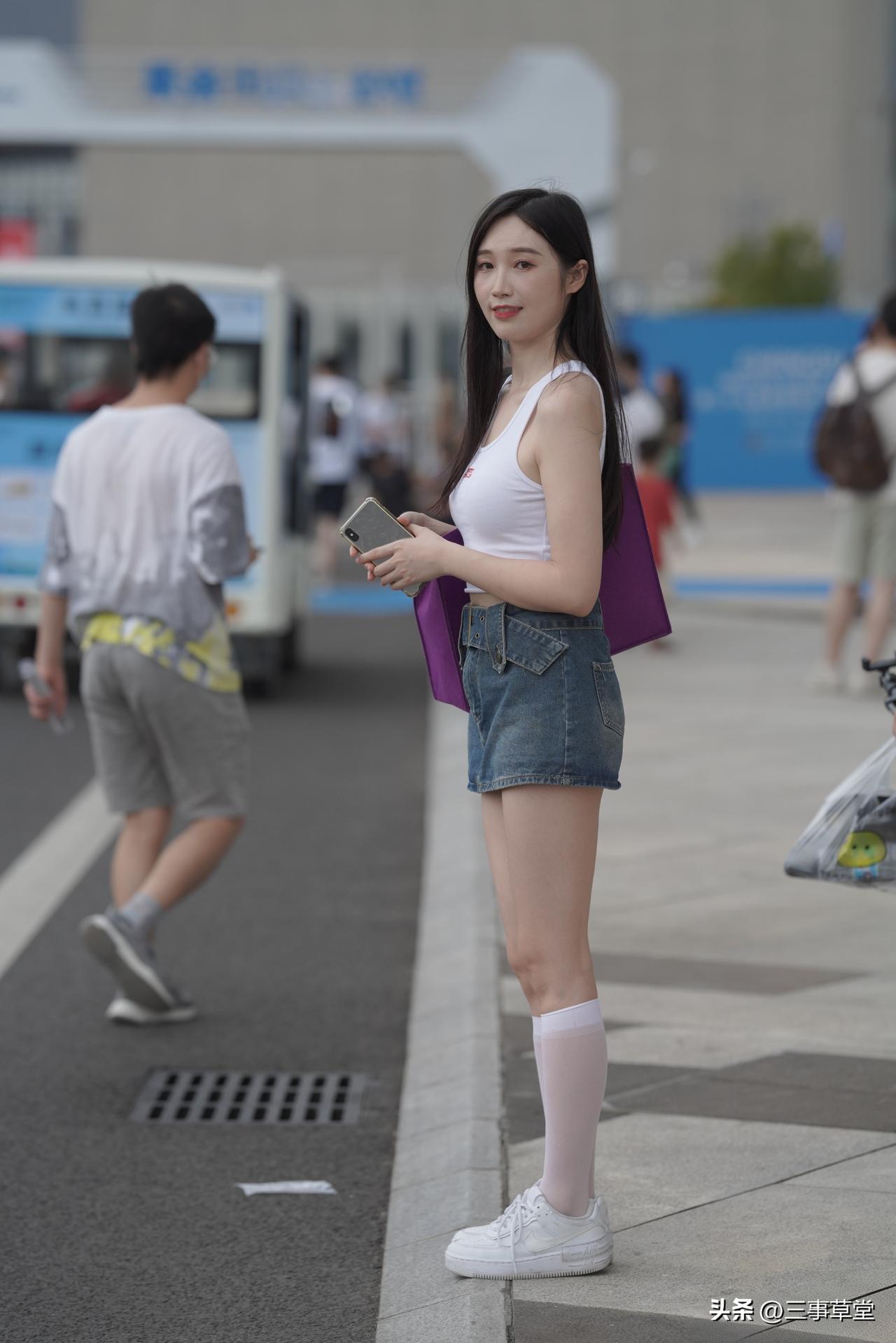 心向美好不被定义!热裤背心 是夏天的感觉 .分享街拍小姐姐