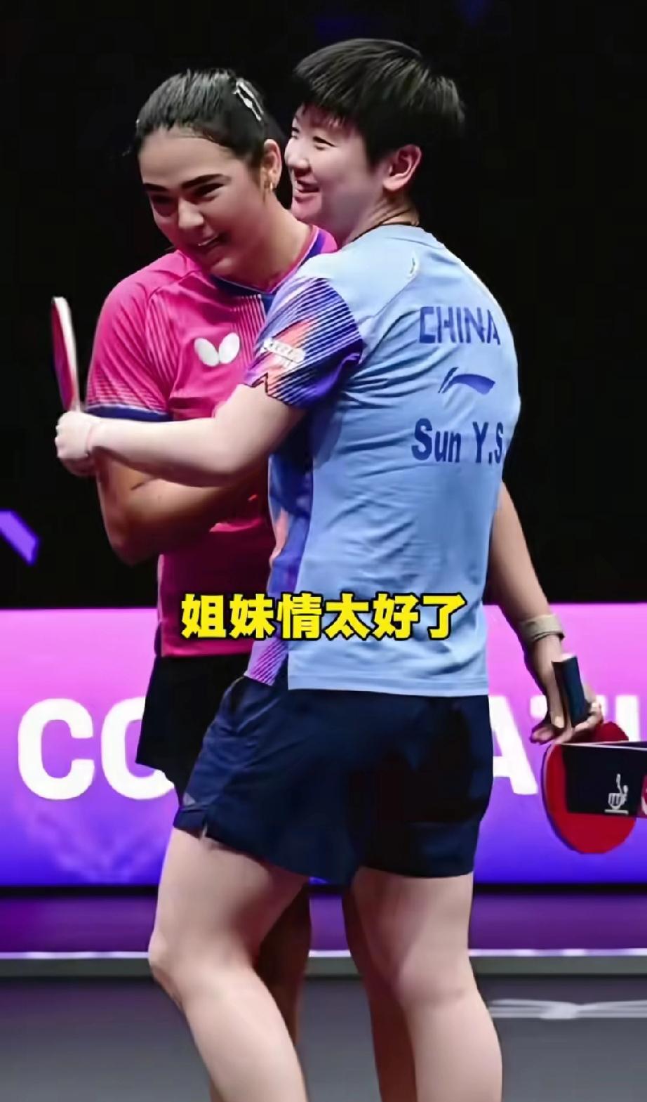 马琳看着最强外协迪亚茨和莎莎,也露出老父亲般的笑容。 作为被马琳认证过的厉害外协,迪亚茨的实力不容小觑。但是面对莎莎时,在学霸面前实力欠佳。这次重庆冠军赛被莎莎剃光头。 虽然被剃光头,可是场上欢乐是真多,莎莎也在球场上检验迪亚茨的实力和心态,每一个球都认真对待。 莎莎场上非常严肃,下场立马一个sorry还加手势。那真是萌翻了! 迪亚茨看着莎莎这样,又靠过去一起和教练去握手了。这不就是妥妥的小姐妹过家家吗。太可爱了!