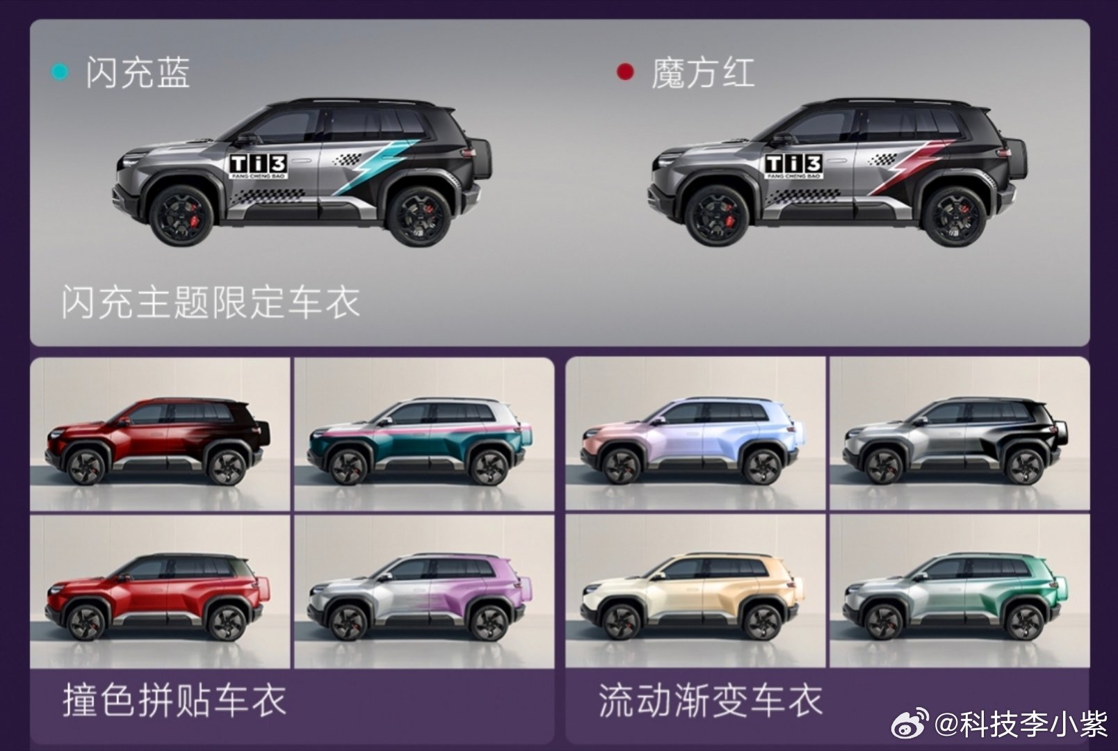 新车全系搭载十大新潮黑科技,同级科技含量无对手,智能EVO+平台配宝马M级同款悬架,驾控质感越级;天神之眼智驾、云辇-C车身控制等四大智能黑科技,让出行更智能;iTAC、TSC主动安全系统+二代刀片电池、CTB架构,构建全维度安全防护。颜值与实用兼具,6大外观色+3大内饰色,多款官方潮改方案满足个性化需求,星际战车座舱打造的越级3舱,适配生活、娱乐、出行等多元场景,前排座椅通风加热、双层隔音玻璃等豪华配置全系标配,四驱版更享帝瓦雷音响、冷暖冰箱等越级配置,诚意拉满。目前钛3闪充版现车已到店,闪充设施就绪,全国门店火热交付中,钛3闪充版26年最值得买的A级纯电精品车~方程豹个性化闪充站布局