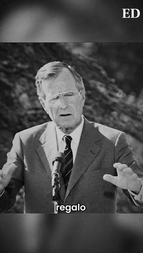 1990年,白宫。时任玻利维亚总统帕斯,送给老布什总统一枚家族金十字架。老布
