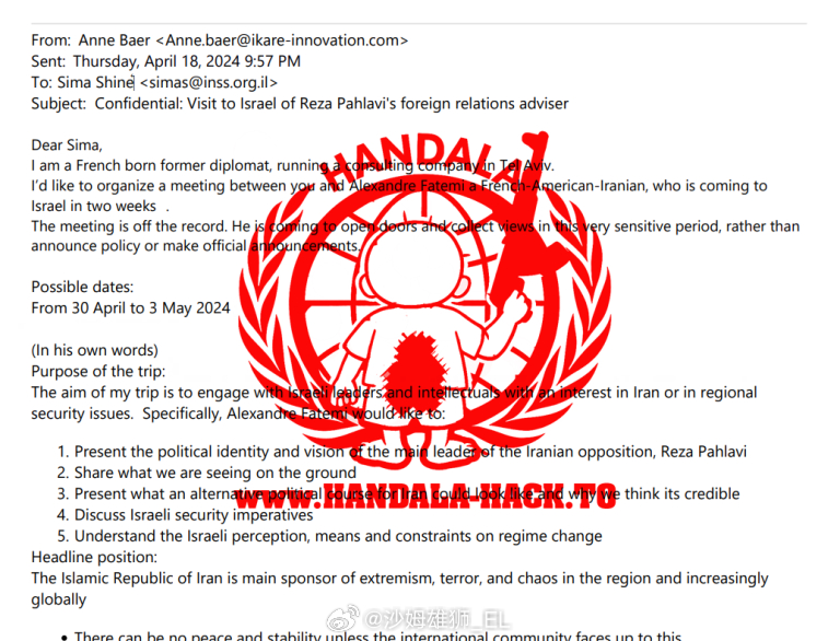 邮件显示,“摩萨德”每月为Raz Zimmat提供30万美元,让他负责与礼萨·巴列维太子的团伙沟通在伊朗境内煽动暴乱的行动。根据这些邮件,Handala识别了多名伊朗境内的以色列间谍的身份,并表示这些人已经被逮捕。