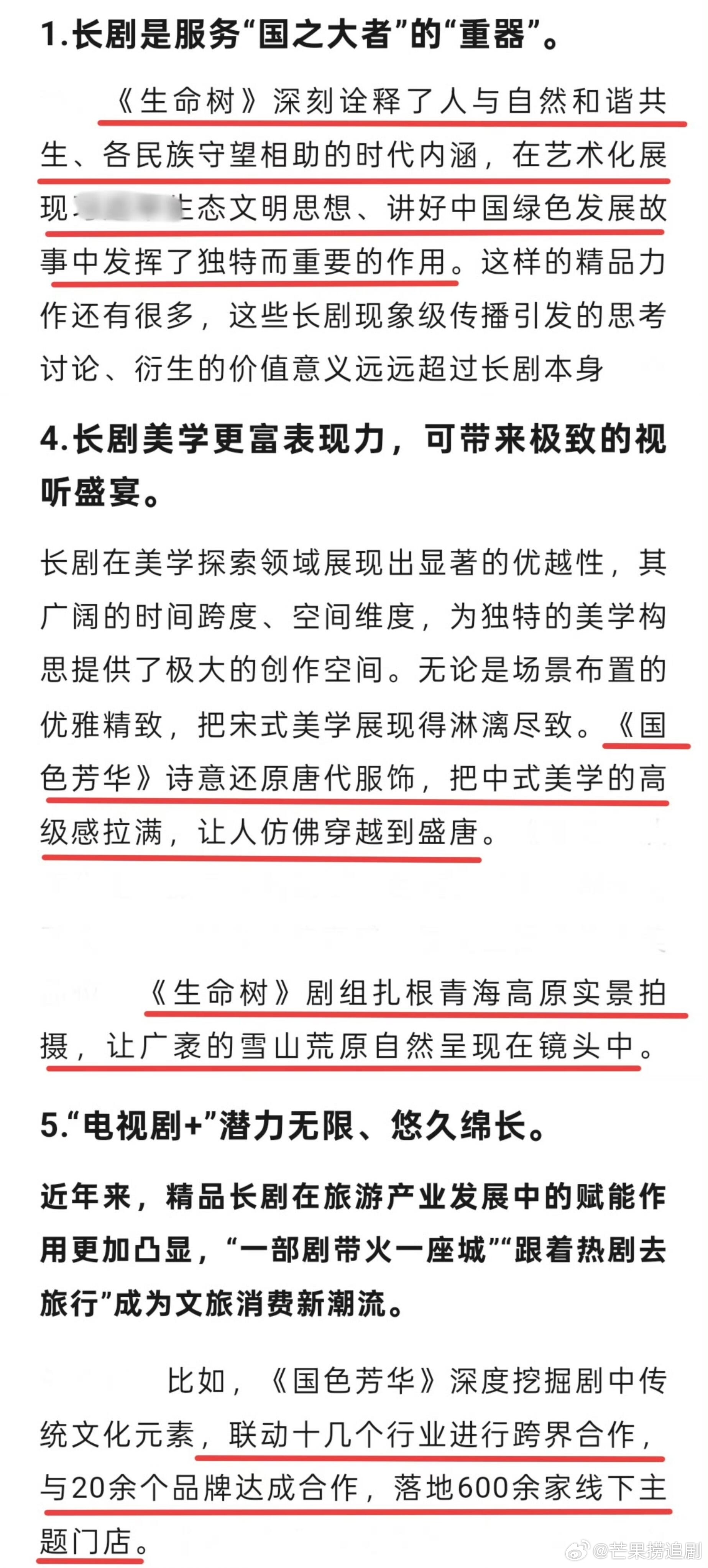 杨紫作为长剧之光,在今天2026中国电视剧制作产业大会上,国家广播电视总局电视剧司司长主题演讲中,多次提到《国色芳华》与《生命树》分别在三个维度给予两部剧高度评价与肯定!从思想高度、美学表现力与行业跨界合作长尾效应中!国色芳华与生命树表现出优异的成绩!一个是把中式美学发挥到极致 成为剧集衍生成语融入民生的超强文化大剧!一个是传递人与自然和谐共生 把高原生灵与环保内核诠释的深入人心的中国西部剧集标杆之作!