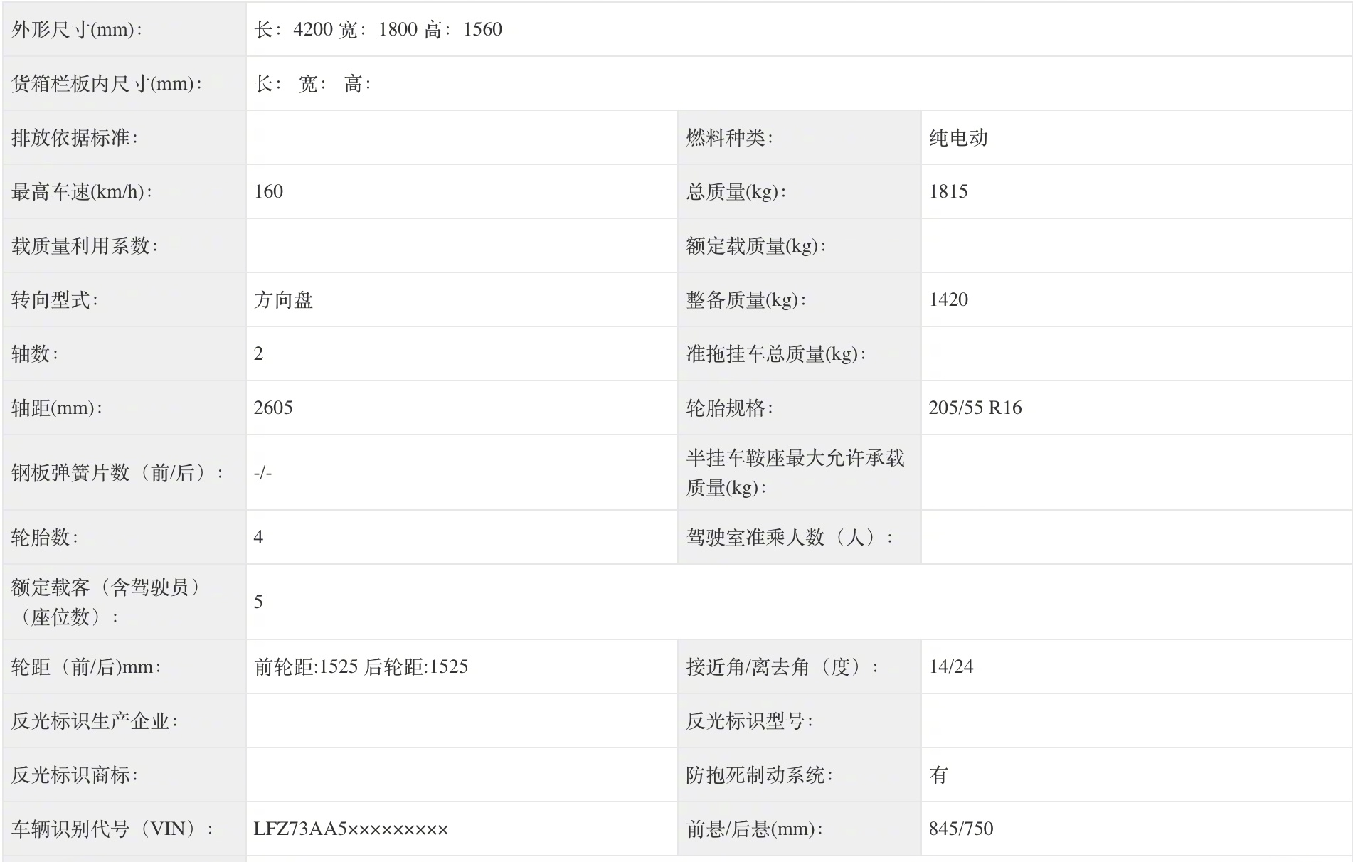 零跑A05长宽高4200x1800x1560mm,轴距2605mm。