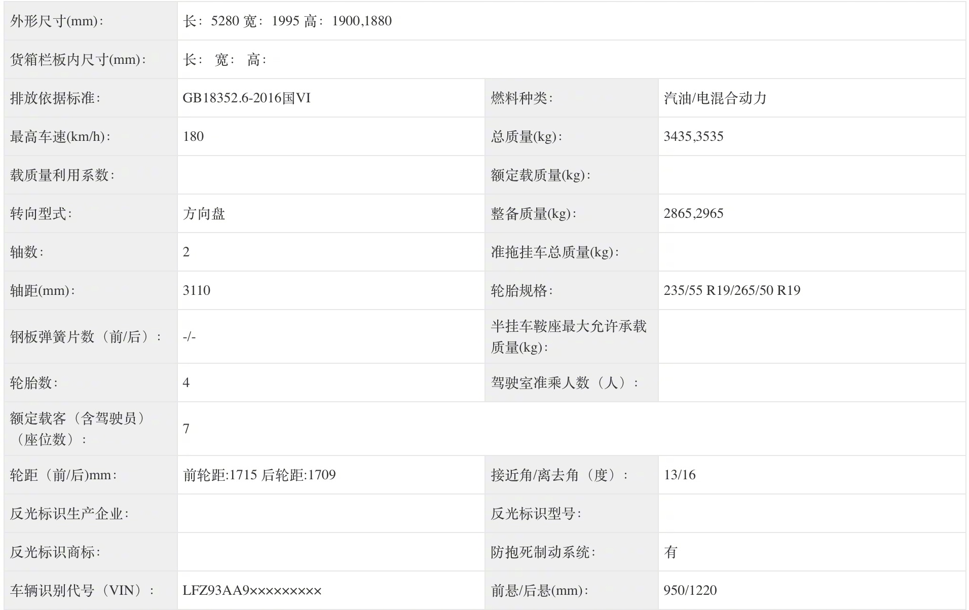 零跑D99长宽高5280x1995x1900(1880)mm,轴距3110mm。