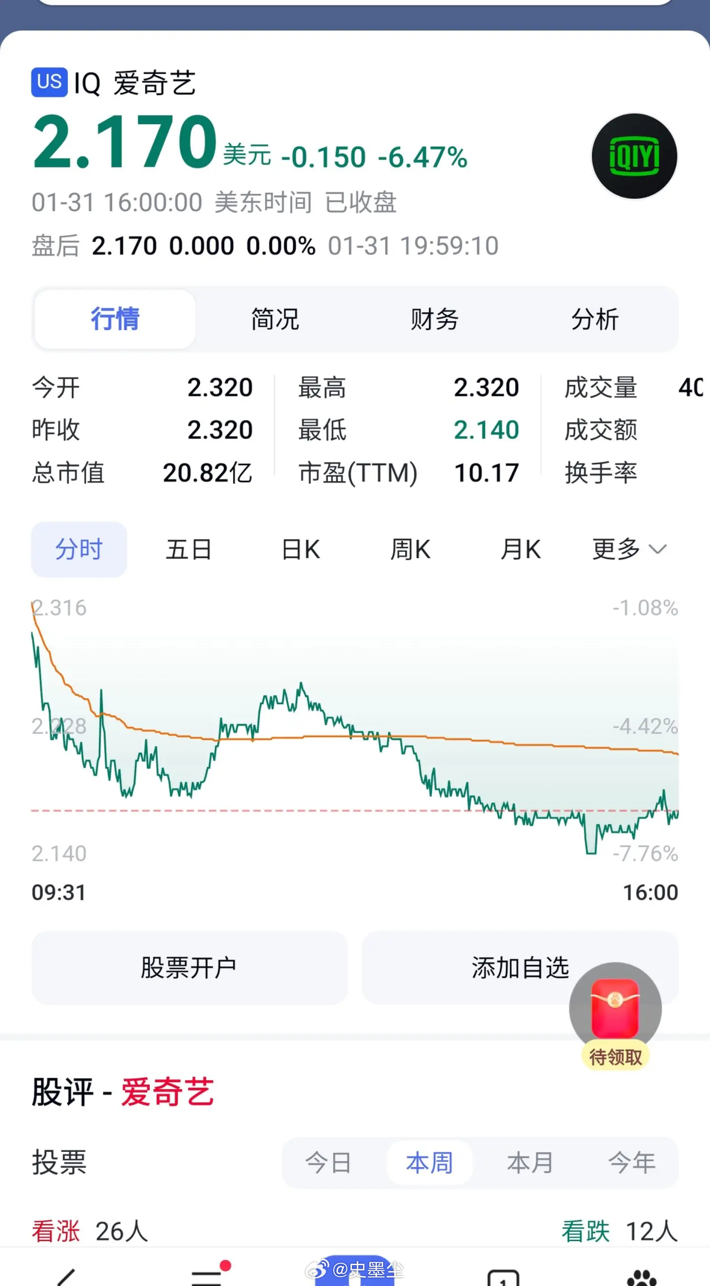 爱奇艺股价爱奇艺 从41.65亿到20.82亿 你走了半年 也不算快了