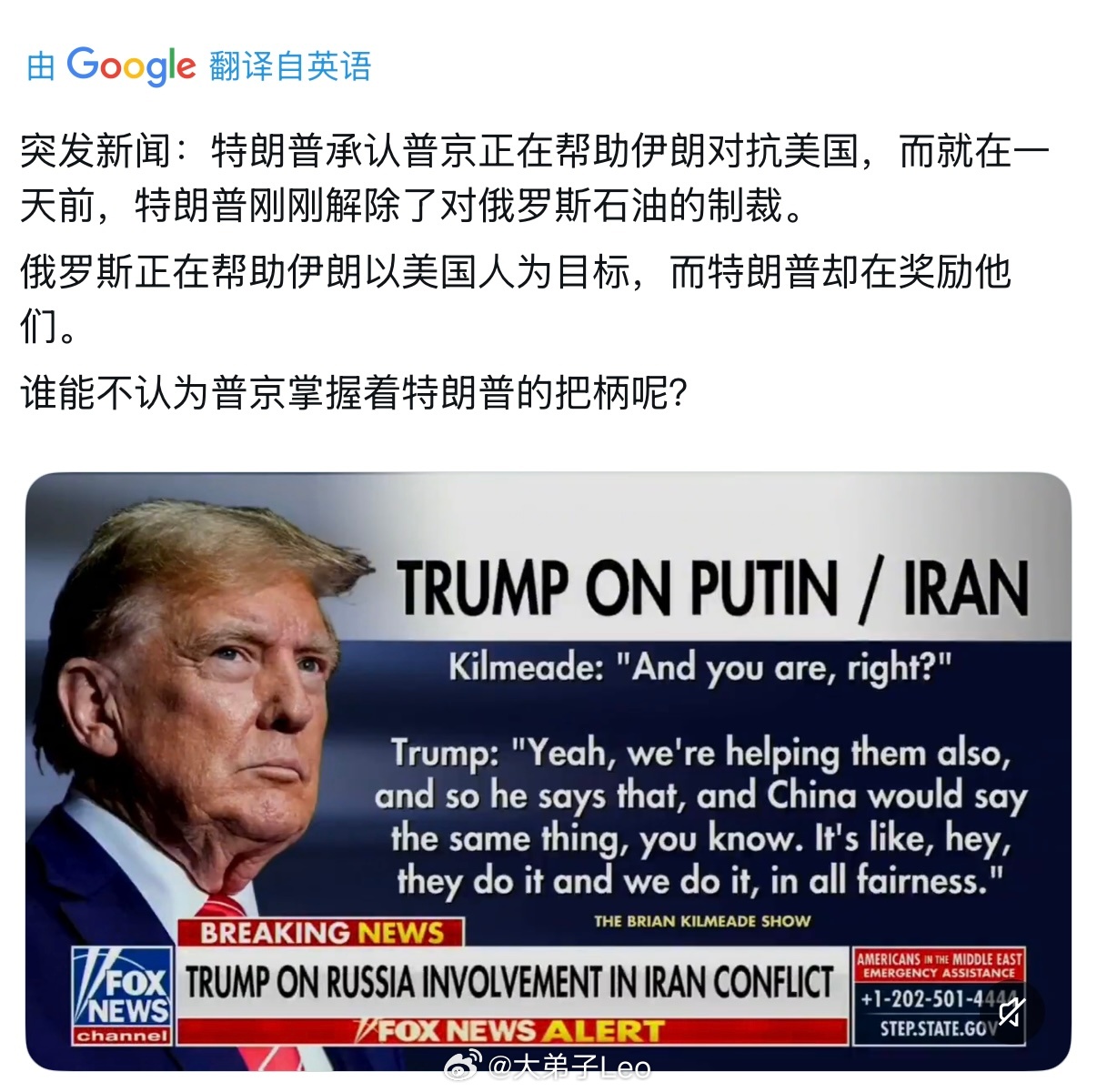 “我觉得普京可能确实帮了伊朗对抗美国和以色列”