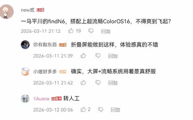 当然也有网友非常看好OPPO Find N6,表示一马平川的findN6,搭配上超流畅ColorOS16,不得爽到飞起?