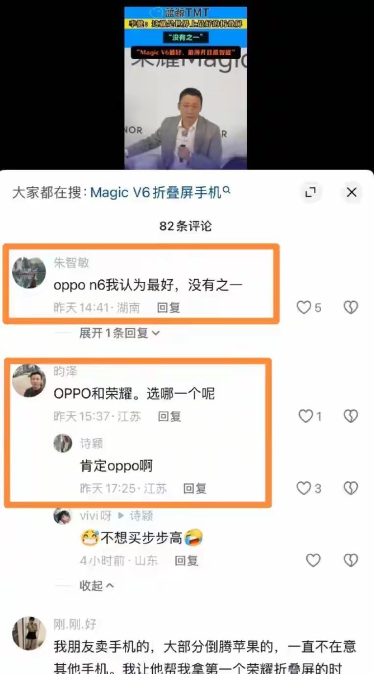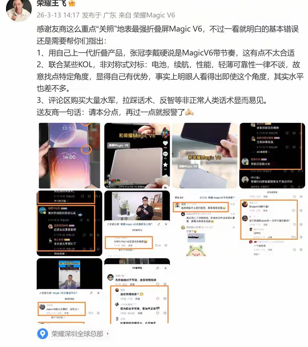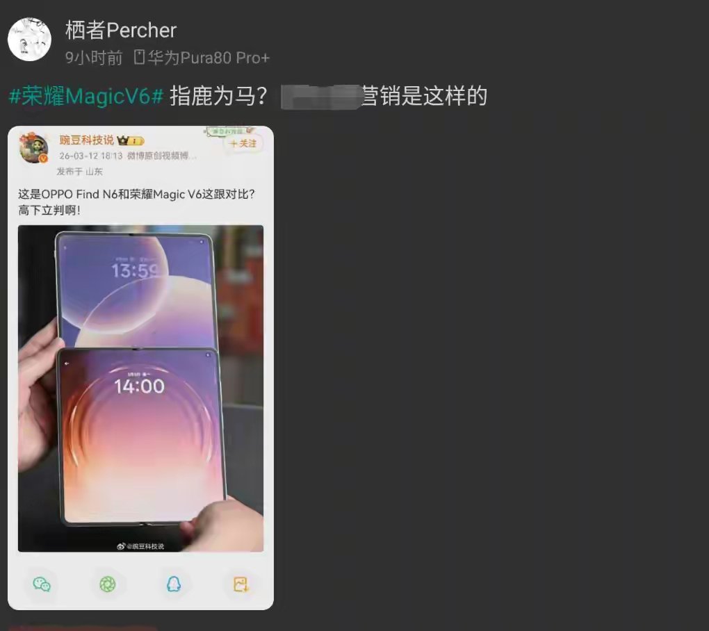 【博主造谣荣耀Magic V6与OPPO Find N6折痕对比,荣耀喊话友商本分点】