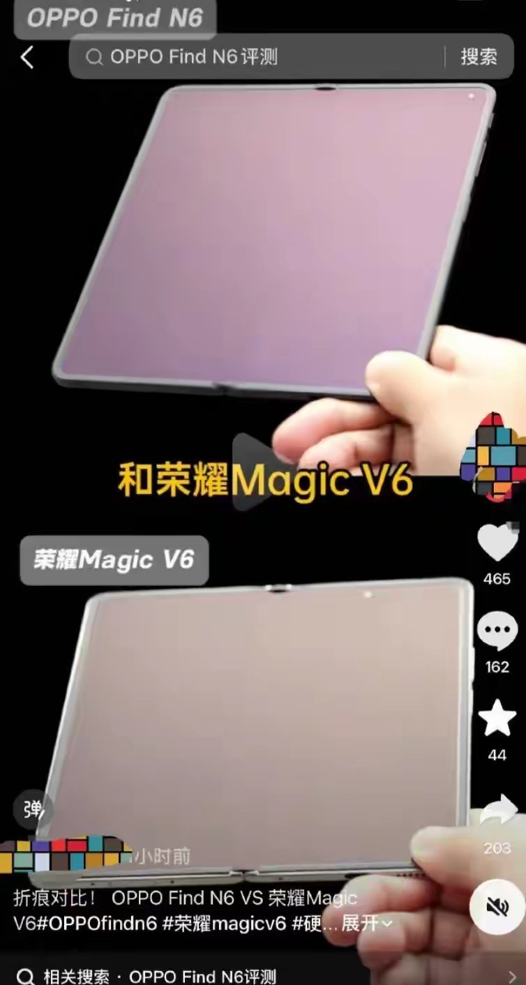 【博主造谣荣耀MagicV6与OPPOFindN6折痕对比,荣耀喊话友商本