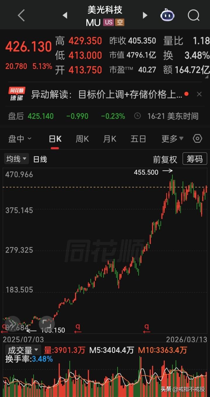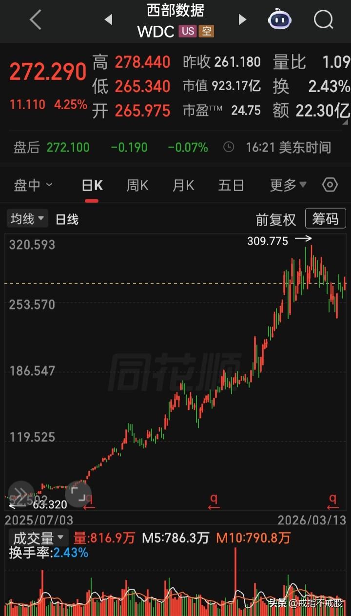 【2026.03.13】美三大指高开低走,收盘齐跌,个股跌多涨少。“大消费、生物质能、固态硬盘、交通基本设施、个人护肤用品、经销商”等板块概念涨幅在前,“英伟达”跌1.58%,“博通”跌4.11%,“超微半导体”跌2.20%,“美光科技”涨5.13%,“闪迪”涨6.92%,“西部数据”涨4.25%,“波音”涨2.51%,“脑再生科技”涨3.21%,“稳定币第一股ICircle”涨1.06%,“唐宁”跌0.50%,“Lumentum控股”1.04%,“AST SpaceMobile”(卫通通信技术)跌0.86%,“Rocket Lab”(太空发射服务)涨0.06%,“Sunrun(家庭电池存储)”涨1.42%,“Enphase Energy(光伏太阳能)“涨3.45%,“纳指金龙中国”涨0.76%,“阿里巴巴”涨0.77%,“尉来”涨5.50%,“腾讯音乐”涨3.80%,三大美指,美元、离岸人民币、黄金、白银、原油涨跌幅表现 【道指】 收46558.47,跌0.26% 【纳指】 收22105.36,跌0.93% 【标普】 收6632.19, 跌0.61% 【美元指数】 目前报100.497,涨0.76% 【离岸人民币】目前报6.90462,涨0.36% 【纽约金主连】目前报5023.6,跌1.99% 【纽约银主连】目前报80.355,跌5.61% 【美原油主连】目前报96.69, 涨2.39%
