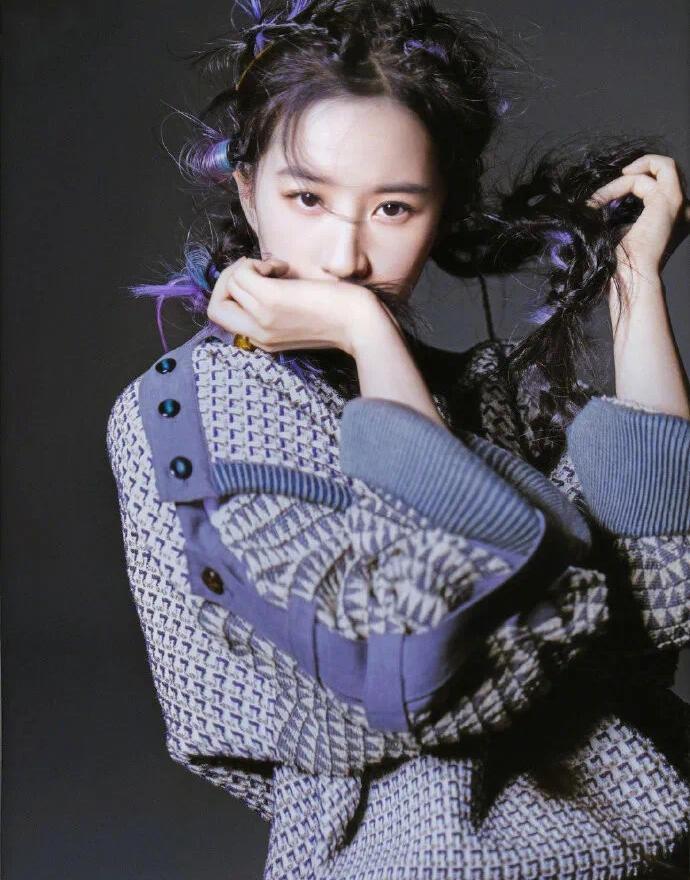 刘亦菲 × 21年嘉人四月刊 紫色鱼骨辫又潮又酷,第一眼就被吸引了,刘亦菲叙事能力,时尚表现力真的太强大。