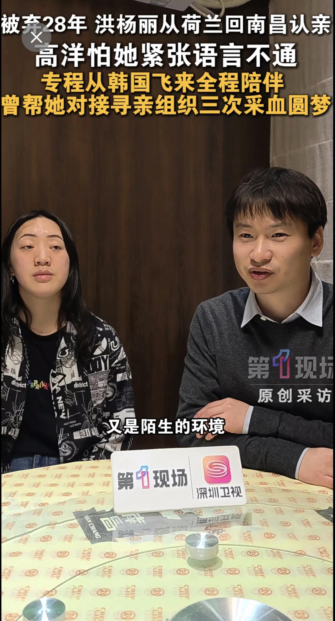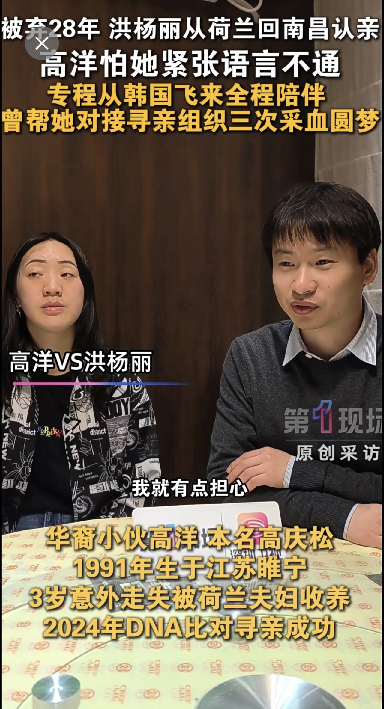 被弃28年在荷兰长大,洪杨丽回家乡江西南昌认亲。华裔小伙高洋,3岁意外走失被荷兰夫妇收养,2024年DNA比对寻亲成功,因担心洪杨丽紧张、语言环境陌生,临时从韩国飞返陪伴,此前高洋曾多次助力她寻亲采血。