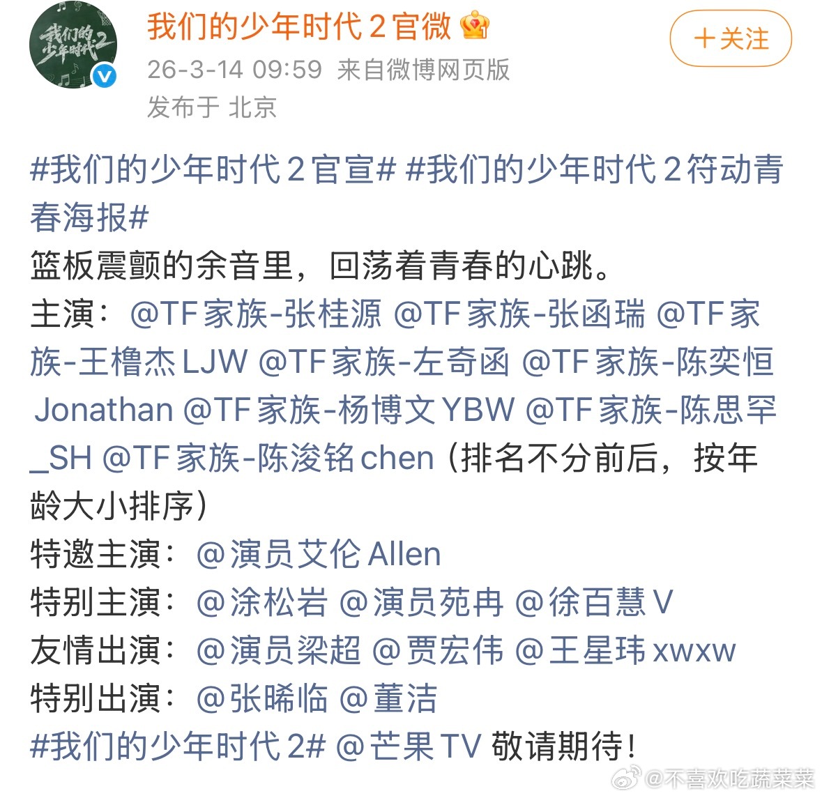 宣了(按年纪排的我们的少年时代2官宣