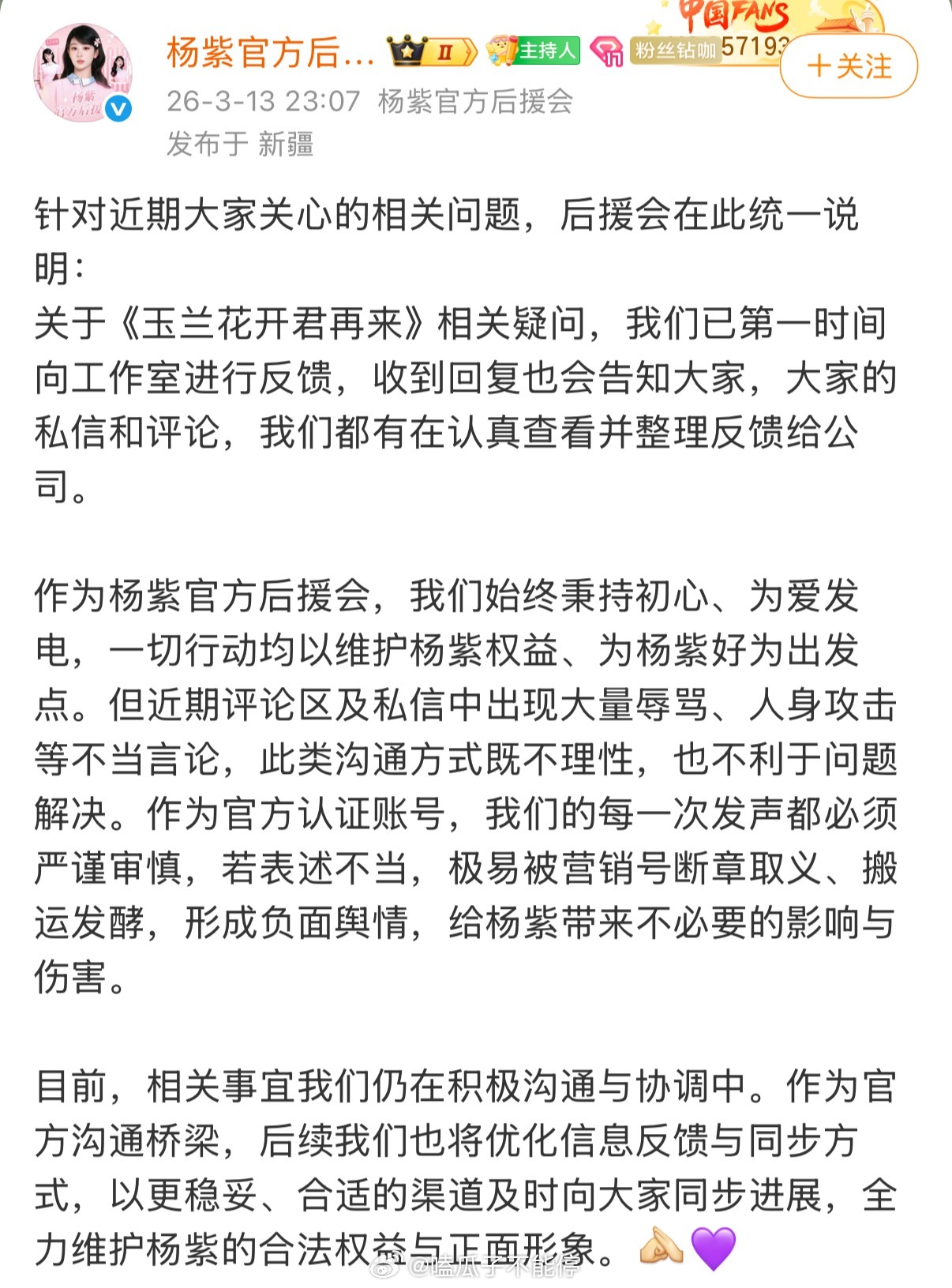 杨紫后援会在回应什么呀?新剧咋了嘛