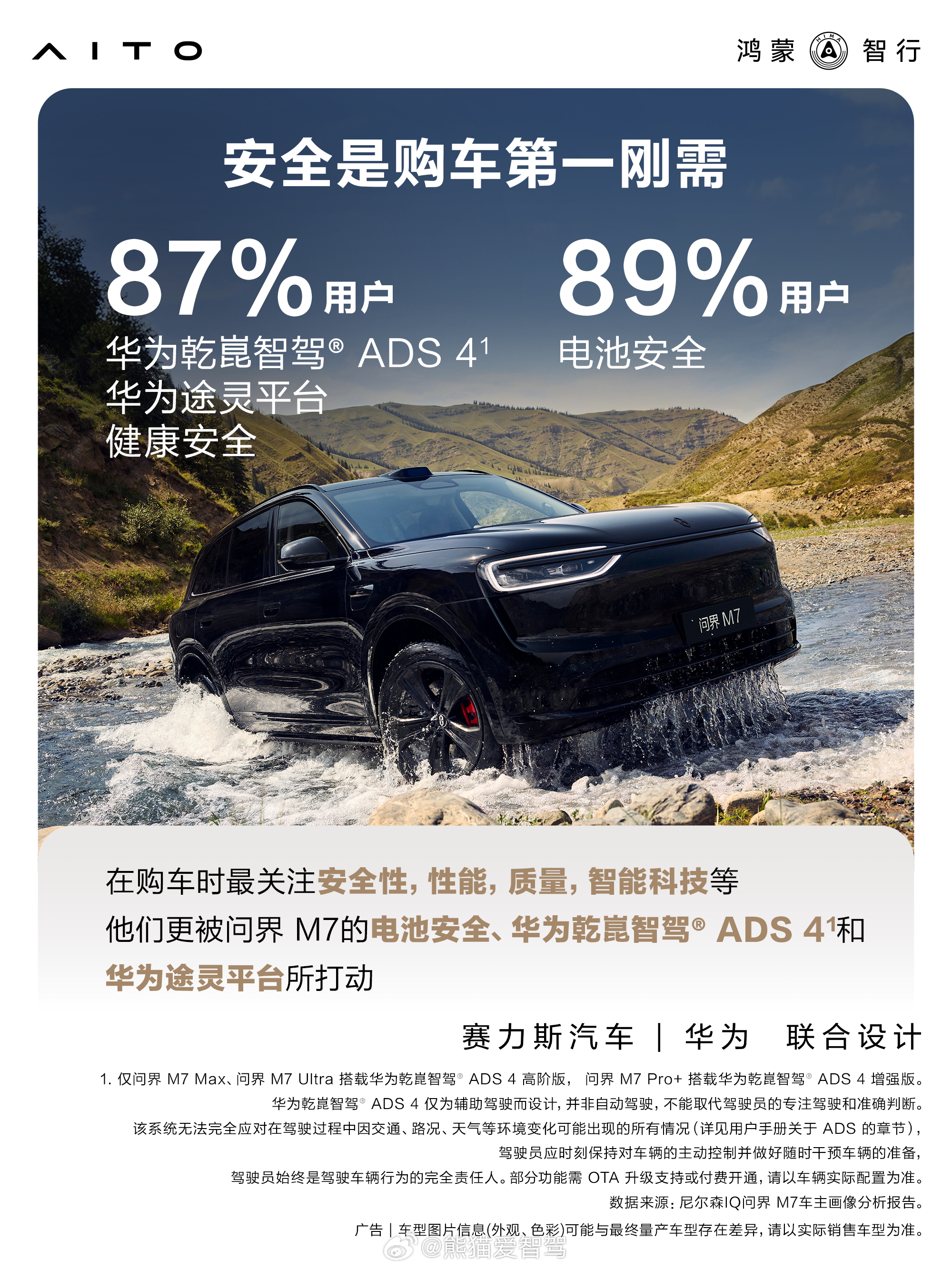 问界m7 累计交付突破43万辆了,其中64%是90后,安全是问界M7用户购车第一刚需,而且每10位车主中就有8位主动推荐!