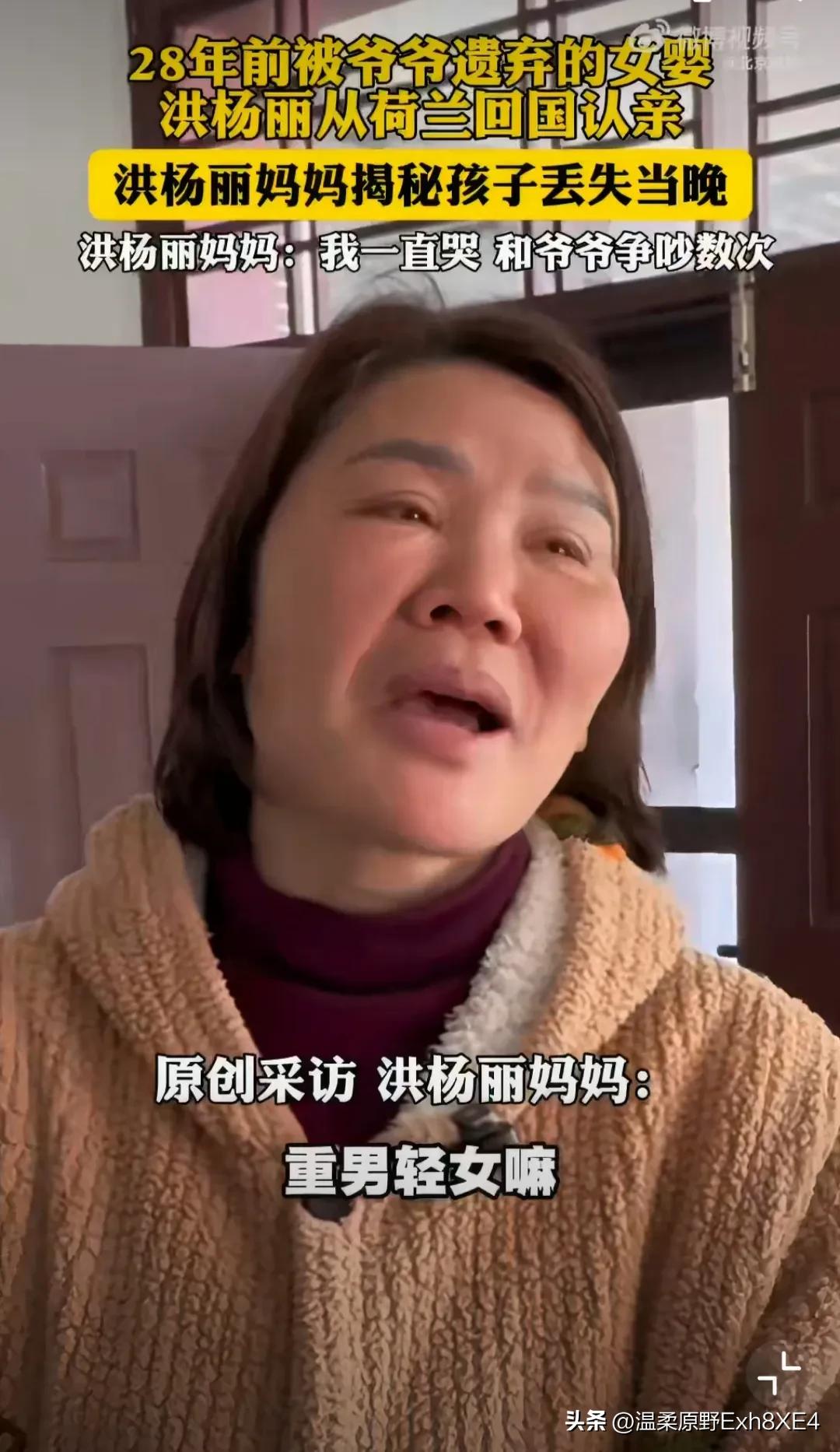 洪杨丽这姑娘太幸运了! 出生仅2天被爷爷扔到公厕旁边,但是当天就被派出所一女警发现,得到救助,并送到福利院。 她最最幸运的是,一年后遇到了她善良的养父母!28年后的她回国寻亲,善良可爱,脸上洋溢着自信大方, 反观她的妈妈,相似的脸上充满着颓废和心酸!而她的爸爸对于她被遗弃一事,竟然这样说: “自己爸爸弄丢的,怎么可能报警呢?不敢责怪长辈,那是父亲” 如果洪杨丽没被丢弃,在这样的家庭长大,那她的前半生也就是这个家庭的血包而已! 替这女孩开心! 网友:怎么可能没同意,爷爷就敢扔孩子?还说一直在找,不报警、不去福利院,糊弄谁呢?女孩不该回来认这样的亲人!