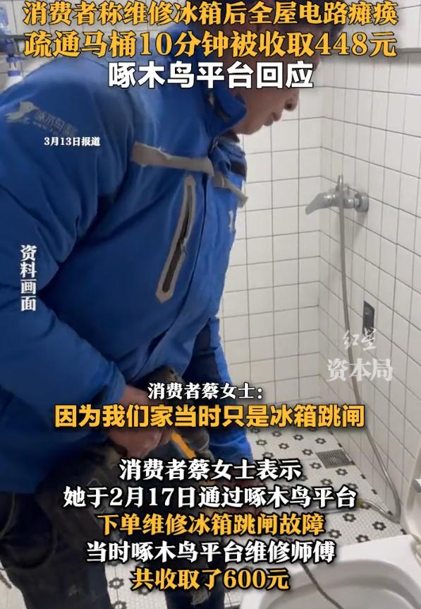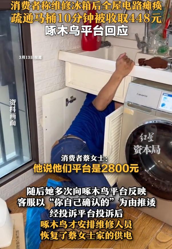 换汤不换药!浙江,一女子家里冰箱跳闸,就在网上找啄木鸟维修师傅上门维修,结果冰箱没修好,还把全屋的电路弄瘫痪了,女子要求修好,师傅却告知这是另外的费用,女子一气之下就在网上进行了投诉。网友:看来要连续两年315上榜了 蔡女士介绍,那天家里的冰箱突然跳闸,她想着找个专业的师傅来看看,毕竟电器这东西自己也不敢乱动。于是掏出手机,在啄木鸟维修平台下了单,付了600块钱 师傅上门后,捣鼓了一阵子 捣鼓的结果是什么呢?冰箱没修好不说,整个屋子的电路全给整废了。这下好了,不光冰箱不能用,连灯都亮不起来了 蔡女士当时就懵了,这不是越修越坏吗?她赶紧跟师傅说,你得给我弄好啊,这算怎么回事? 接下来的对话,才是真正让她火冒三丈的地方 师傅倒是一脸淡定,说修是可以修,但要加钱。如果走平台,需要2800块;如果私下转给他,1500就行 蔡女士当场就拒绝了。不是舍不得这1500,而是这事儿从头到尾就不对劲。我请你来是修冰箱的,结果你把全屋电路搞瘫了,现在还要我出钱才能恢复正常?这逻辑说不通啊 接下来的几天,蔡女士开始了漫长的投诉之路。平台客服换了一个又一个,每次都是同样的说辞:会核实、会处理、请耐心等待。等了半天,就是没人上门 最后还是她坚持不懈地投诉,平台才重新派了师傅过来,把电路修好了 有网友说:看来啄木鸟要连续两年315上榜了。去年刚被点名,今年就忘了疼? 这话说得一点不假。去年315晚会,啄木鸟维修因为乱收费、小病大修的问题被曝光过。当时也是闹得沸沸扬扬,平台也发了整改声明,说什么要加强管理、规范服务 结果呢?一年不到,老毛病又犯了 我觉得,去年315曝光,今年老毛病又犯,说明什么?说明问题的根子不在某一个师傅、某一个订单上,而在整个模式本身。只要平台只想着抽成、不真正管束服务质量,只要师傅们还能靠私下交易捞外快,只要消费者依然处于信息弱势,这种事情就会一而再、再而三地发生